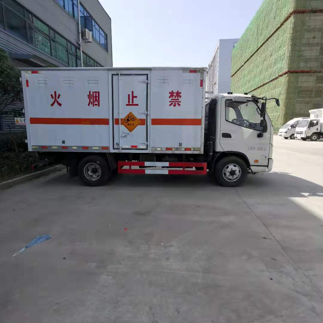 福田M3國六爆破運輸車廂體尺寸4100×2150×1800mm,廂體為雙層金屬骨架結構,外部為冷扎鋼板,內壁采用鋁合金板蒙面,夾層為隔熱阻燃材料填充。設置對開門,側壁設有防雨功能自然通風窗口,以使廂內外空氣流動,廂體內部做防靜電處理,廂體底部與廂內前部鋪有阻燃導靜電膠板,并與底盤等電位連接,通過車輛后端的導靜電裝置與大地相連,可防止靜電火花的產生和車輛靜電及時釋放,提高易燃氣體廂式運輸車的安全性。廂體內部前面和側面裝有固定拉環,與捆綁帶使用捆綁貨物以避免移動,保證安全。帶防盜報警器、靜電帶。