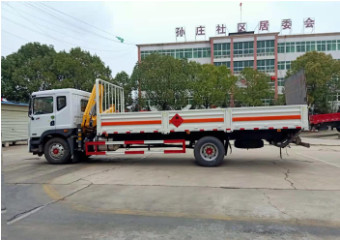 有環保,有燃油,不超重.廂長6.8米,帶空氣懸掛底盤,防爆胎,安全帶提示報警,剎車報警。廂體可選高欄和低欄瓦楞式,配備滅火器,三角頂燈,靜電拖帶等,嚴格按照國家危險品法規進行“易燃氣體”標識粘貼等,帶徐工吊(4噸3節折臂)