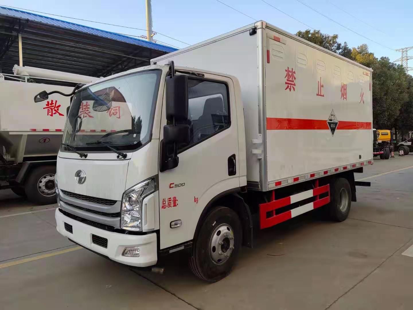 運輸氧氣瓶、二氧化碳等二類危險品車都需要專用的車輛進行運輸,尤其是需要重載版的車型,目前市場上查危險品運輸超重都非常嚴格,程力專汽為您推薦額載4噸的躍進C500國六黃牌易燃氣體廂式運輸車,詳細配置如下: