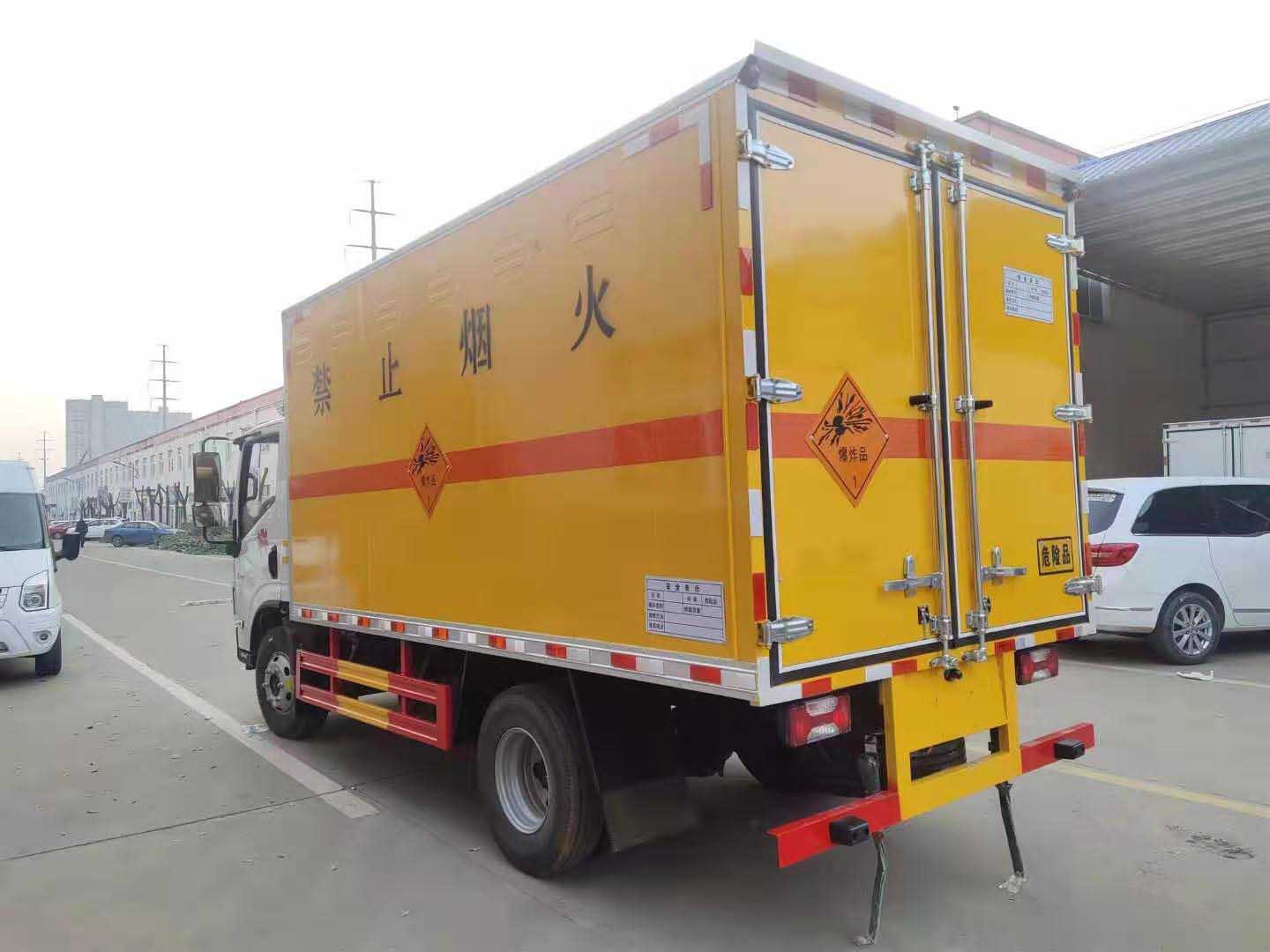 躍進C500國六黃牌易燃氣體廂式運輸車采用躍進C500原廠危貨底盤,云內170馬力柴油發動機機,上汽6檔變速器,3308mm軸距,7.50R16胎,排氣管前置,ABS,電動門窗,中控鎖,帶原廠空調。廂體配置:整車尺寸:5995×2250×3040mm ;廂體尺寸:4080×2120×1900mm,嚴格按照公告尺寸制作,外板采用1mm厚冷軋板有一次性成型的百葉窗,內飾為導電性能良好的鋁板有透氣孔,內襯為矩形管骨架牢靠穩定,內部填充為透氣防潮阻燃的擠塑板,四種材料經現代工藝復合而成,廂體外部上下鋁合金型材包邊,底板和車廂前下部鋪橡膠皮,后門雙開,右側中部雙開門,內部有固定貨物的臥環,車輛外部有靜電帶、滅火器、防火罩,車廂內安裝煙霧報警器和門防盜報警器,嚴格按照國家危險品相關法規張貼。