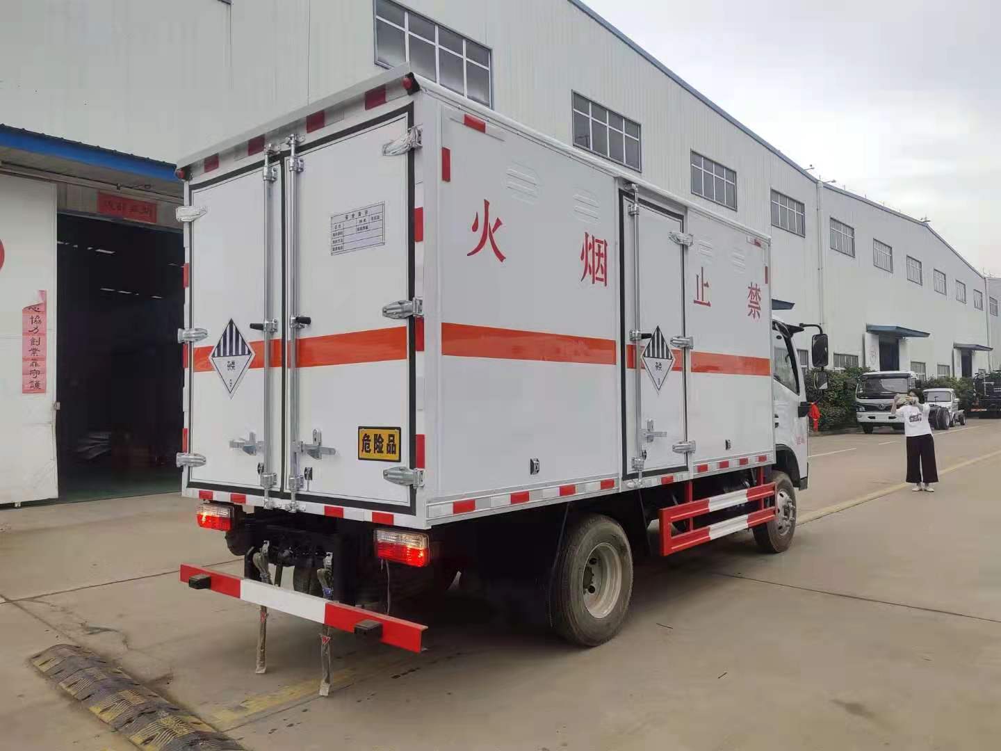 東風(fēng)福瑞卡F6藍牌危險品廂式車采用東風(fēng)危險品車底盤,福瑞卡駕駛室,云內(nèi)125馬力發(fā)動機,萬里揚5檔箱,7.00R16輪胎,1.8噸前橋,3.5噸后橋,空調(diào),方向助力,電動門窗,中控鎖,多功能方向盤,定速巡航,ABS,斷氣剎。整車尺寸:5995×2150×2950;廂體尺寸:4120×2020×1850mm。廂體嚴(yán)格按照公告尺寸制作,外板采用1mm厚冷軋板有一次性成型的百葉窗,內(nèi)飾為導(dǎo)電性能良好的鋁板有透氣孔,內(nèi)襯為矩形管骨架牢靠穩(wěn)定,內(nèi)部填充為透氣防潮阻燃的擠塑板,四種材料經(jīng)現(xiàn)代工藝復(fù)合而成,廂體外部上下鋁合金型材包邊,底板和車廂前下部鋪橡膠皮,后門雙開,右側(cè)中部單開門,車輛外部有靜電帶、滅火器、防火罩,車廂內(nèi)安裝煙霧報警器和門防盜報警器,嚴(yán)格按照國家危險品相關(guān)法規(guī)張貼。