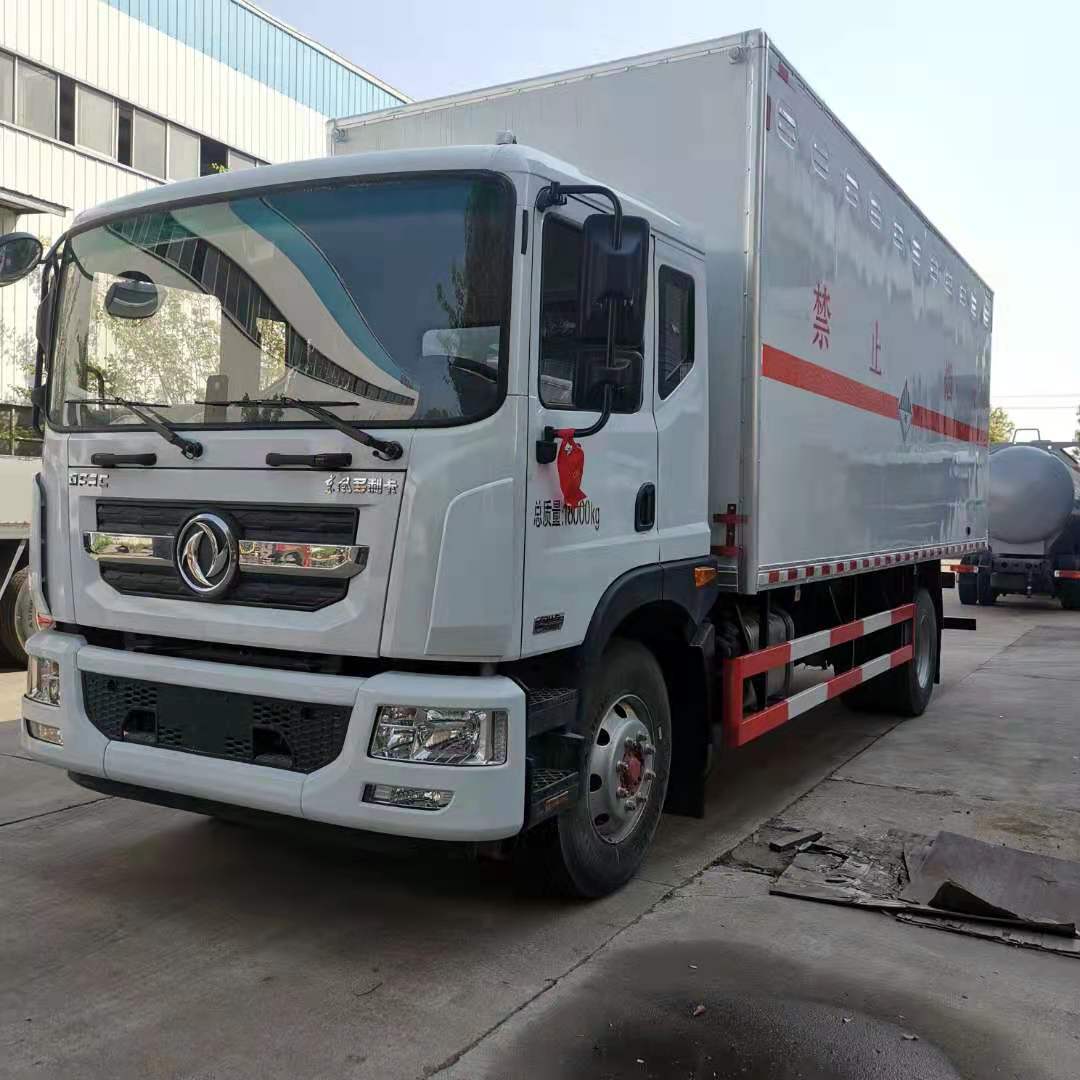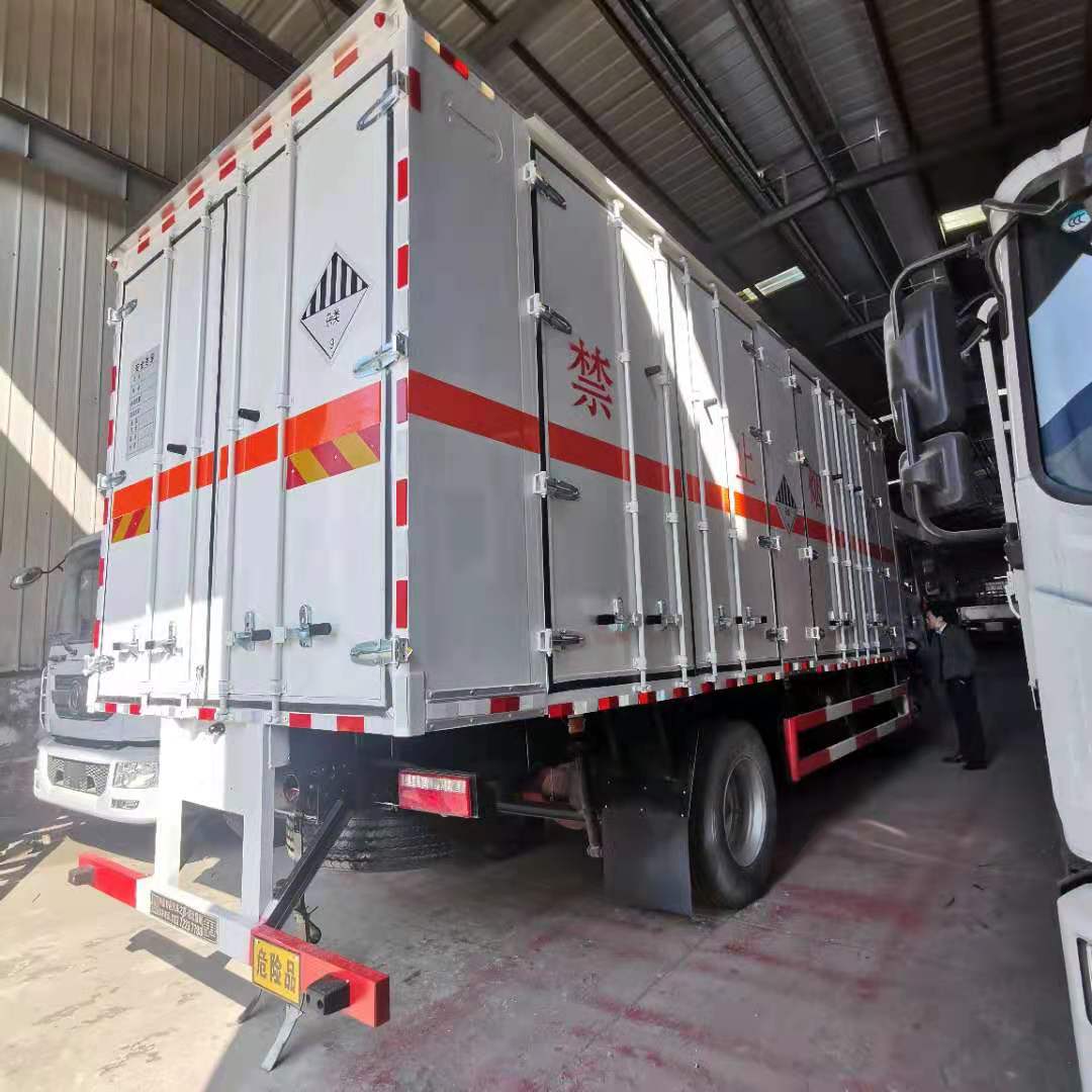 6米2東風D9爆破器材車采用東風D9原廠危險品車底盤,康明斯230馬力發動機,帶ABS、原廠空調、排氣管前置、帶方向助力、限速裝置,帶安全帶未系提醒、剎車襯片預警提示、防爆胎裝置。嚴格按照公告尺寸制作,外板采用1mm厚冷軋板有一次性成型的百葉窗,內飾為導電性能良好的鋁板有透氣孔,內襯為矩形管骨架牢靠穩定,內部填充為透氣防潮阻燃的擠塑板,四種材料經現代工藝復合而成,廂體外部上下鋁合金型材包邊,底板和車廂前下部鋪橡膠皮,后門雙開,右側中部雙開門,內部有固定貨物的臥環,車輛外部有靜電帶、滅火器、防火罩,車廂內安裝煙霧報警器和門防盜報警器,嚴格按照國家危險品相關法規張貼。