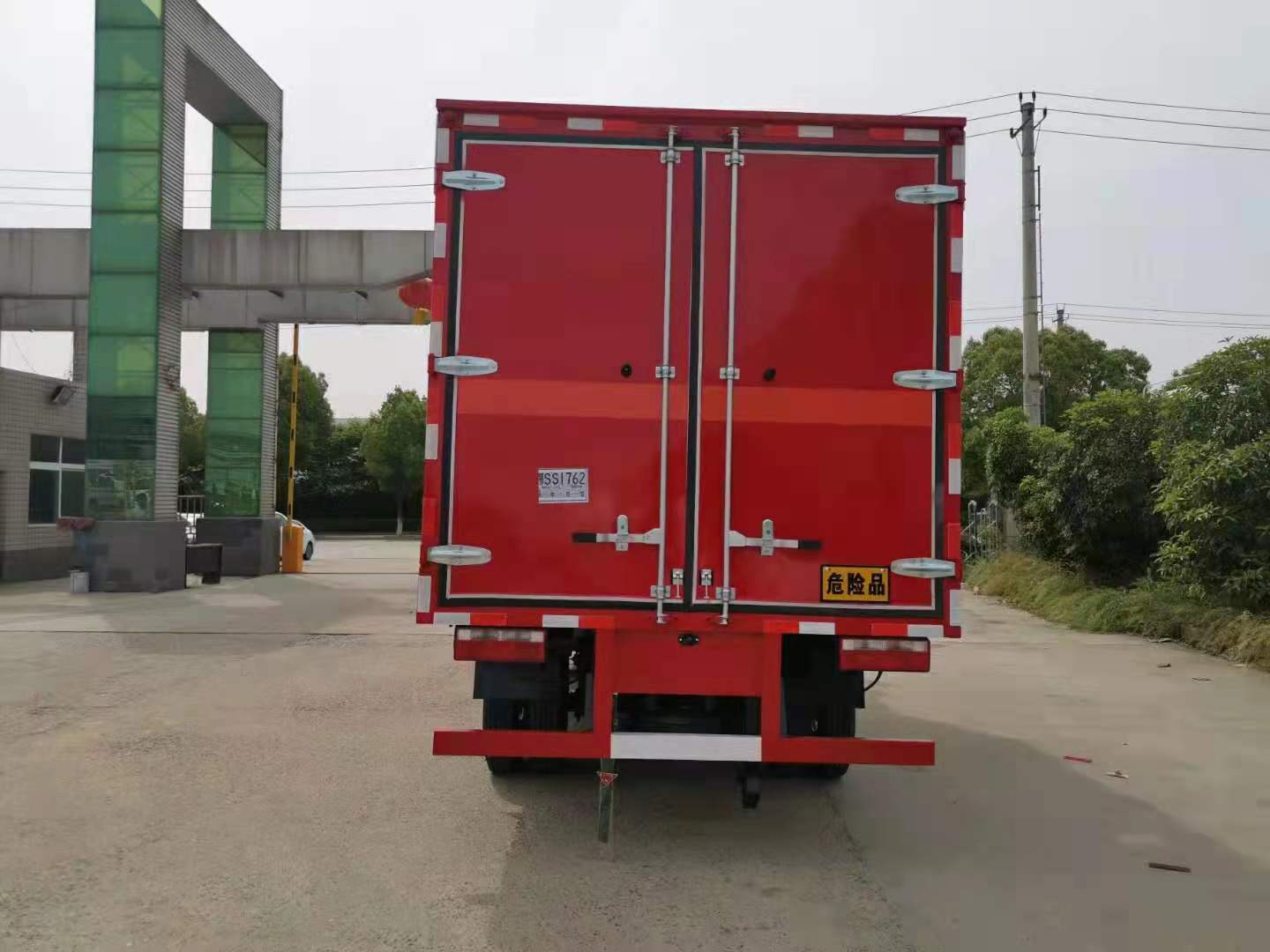 解放虎V國(guó)六紅色瓦楞板危險(xiǎn)品車(chē)采用解放虎V危險(xiǎn)品車(chē)專(zhuān)用底盤(pán),藍(lán)牌6檔變速箱,寬體駕駛室,帶中控鎖、電動(dòng)門(mén)窗、行車(chē)記錄儀、方向助力、原廠空調(diào)。重點(diǎn)是藍(lán)牌少有的3人座,濰柴130馬力發(fā)動(dòng)機(jī),是目前藍(lán)牌車(chē)型中少有的馬力大車(chē)型。該車(chē)采用的是瓦楞板危險(xiǎn)品車(chē)廂體,內(nèi)飾為導(dǎo)電性能良好的鋁板有透氣孔底板和車(chē)廂前下部鋪橡膠皮,后門(mén)雙開(kāi),右側(cè)根據(jù)客戶要求定制的是前開(kāi)側(cè)門(mén),方便客戶后期加裝隔艙。內(nèi)部有固定貨物的臥環(huán),車(chē)輛外部有靜電帶、滅火器、防火罩,車(chē)廂內(nèi)安裝煙霧報(bào)警器和門(mén)防盜報(bào)警器,嚴(yán)格按照國(guó)家危險(xiǎn)品相關(guān)法規(guī)張貼。