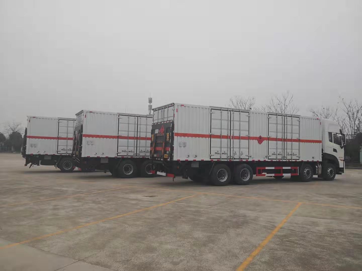 東風(fēng)天龍前四后八國六廂式運(yùn)輸車采用D320天龍KL駕駛室,龍擎DDi75E350-60發(fā)動(dòng)機(jī)(沃爾沃技術(shù)),陜齒9JS135TA變速箱,前5.5噸,后10噸,1995+4500+1350mm軸距,295/80R22.5 18PR真空胎,鋁350L油箱,帶空調(diào),電動(dòng)玻璃,遙控鑰匙,行車記錄儀,氣囊座椅,前盤,后鼓,ECU限速,后橋空懸。帶EBS(電控制動(dòng)系統(tǒng)),F(xiàn)CWS(防碰撞預(yù)警),LDWS(車道偏離預(yù)警),TPMS(前軸單臺(tái)胎壓監(jiān)測)ESC,EACS(駕駛室氣囊調(diào)節(jié)),AEBS。外板采用1.2mm厚冷軋鋼板壓瓦成型,內(nèi)部槽鋼骨架,底板采用3mm花紋板上鋪設(shè)防靜電膠皮。廂體右側(cè)開對開門,后部設(shè)置對開門,廂體內(nèi)部兩側(cè)安裝捆綁貨物的臥環(huán)。廂體內(nèi)部安裝煙霧報(bào)警器及防盜報(bào)警感應(yīng)器。