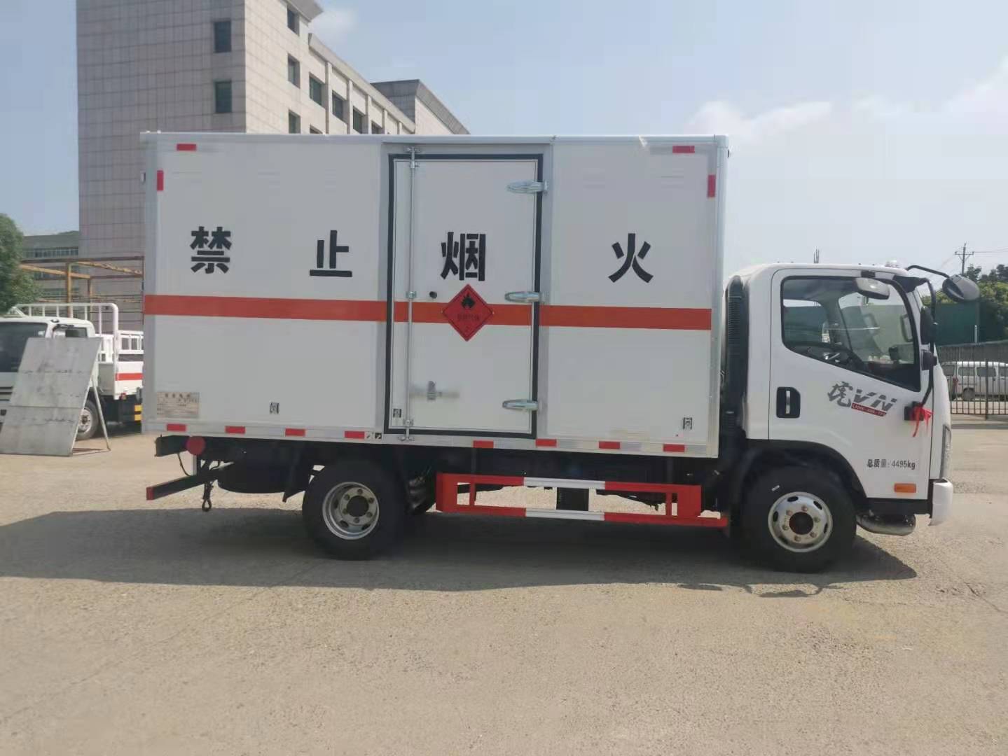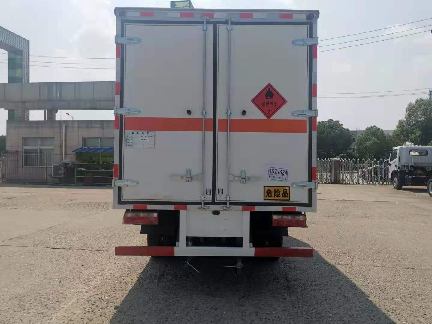 解放藍牌易燃氣體廂式運輸車采用解放危險品車專用底盤,虎VN平頂單排駕駛室,濰柴130,6TS40B,7.00R16 8層級真空胎,多功能方向盤,80L鋁合金油箱,板簧3/7+9,定速巡航,空調+電動門窗+中控鎖,儀表EOL,20L尿素箱,北斗+GPRS行車記錄儀,爆胎應急安全裝置,國產LDW+FCW