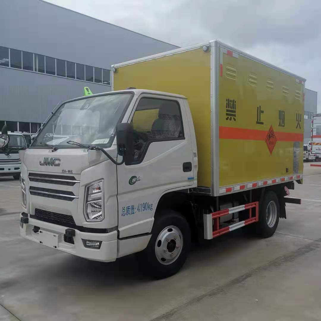 江鈴3米1國六民爆車采用江鈴危險品新規危險品專用底盤。江鈴115馬力發動機、五檔變速箱、7.00鋼絲胎、空調、方向助力、油剎、遙控中控鎖、電動車窗、排氣管前置、前盤碟剎、限速、多功能方向盤、軌道偏離預警、防碰撞預警。