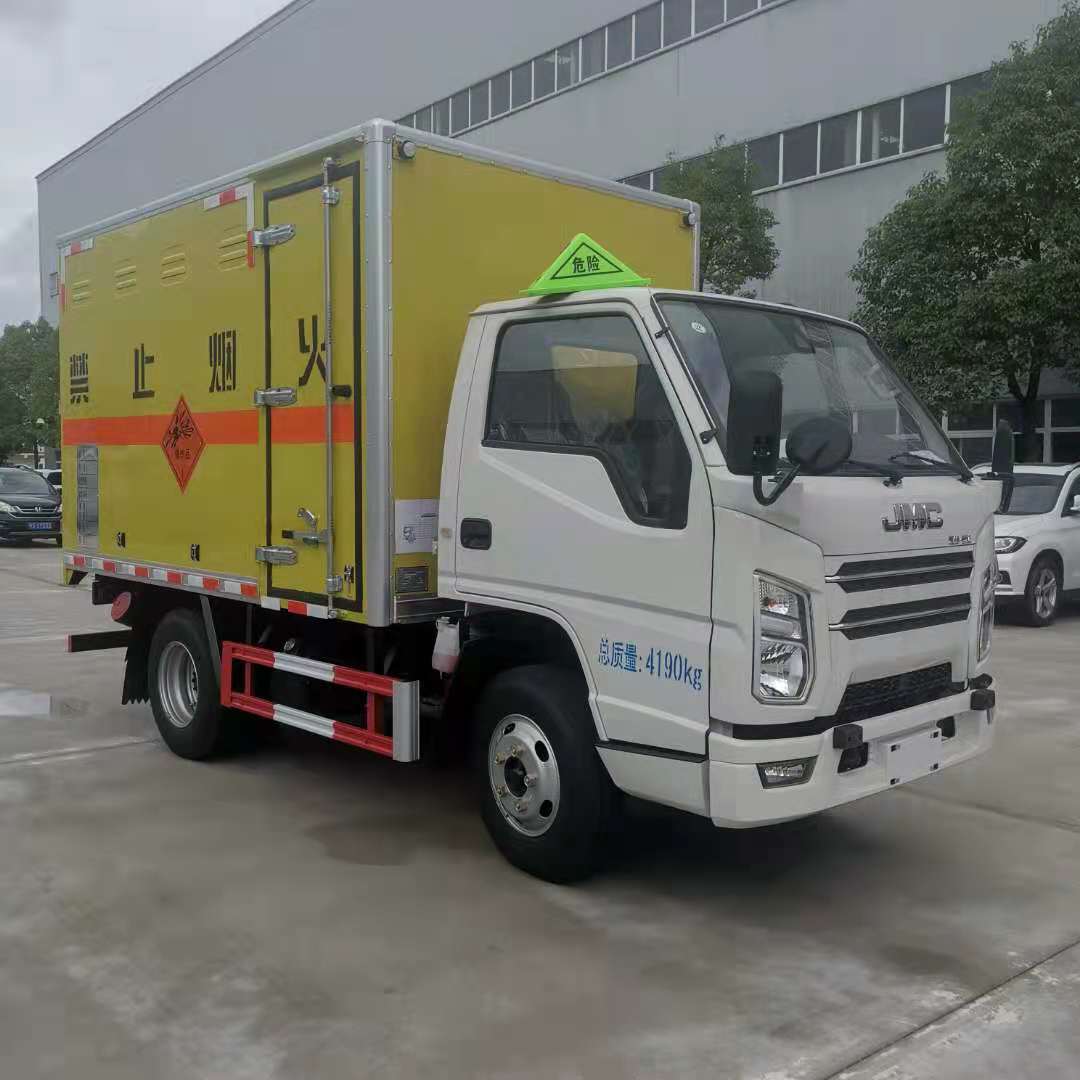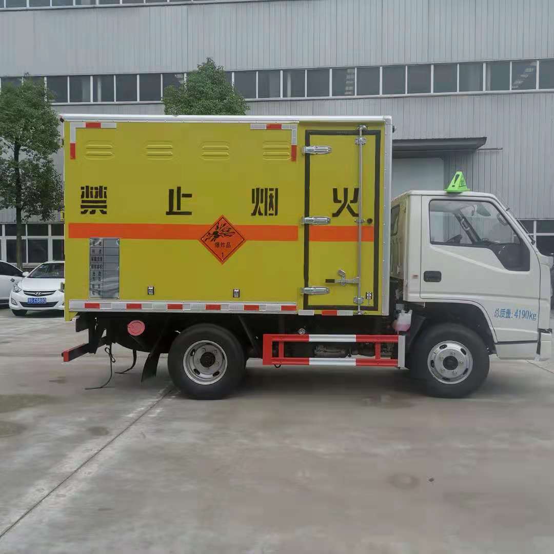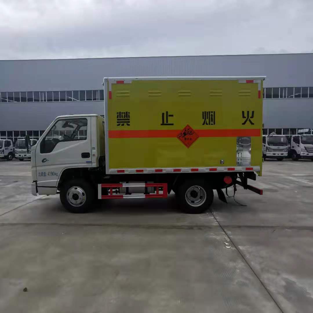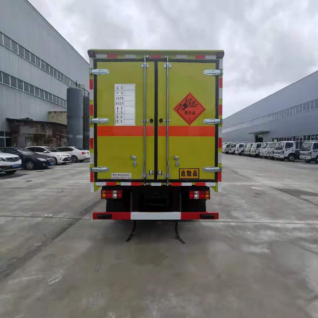 江鈴3米1國六民爆車嚴格按照公告尺寸制作,外板采用1mm厚冷軋板有一次性成型的百葉窗,內飾為導電性能良好的鋁板有透氣孔,內襯為矩形管骨架牢靠穩定,內部填充為透氣防潮阻燃的擠塑板,四種材料經現代工藝復合而成,廂體外部上下鋁合金型材包邊,底板和車廂前下部鋪橡膠皮,后門雙開,右側根據客戶要求定制的是前開側門,方便客戶后期加裝隔艙。內部有固定貨物的臥環,車輛外部有靜電帶、滅火器、防火罩,車廂內安裝煙霧報警器和門防盜報警器,嚴格按照國家危險品相關法規張貼。