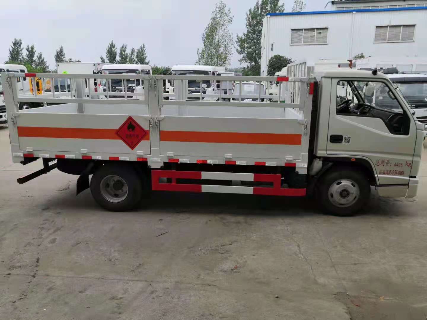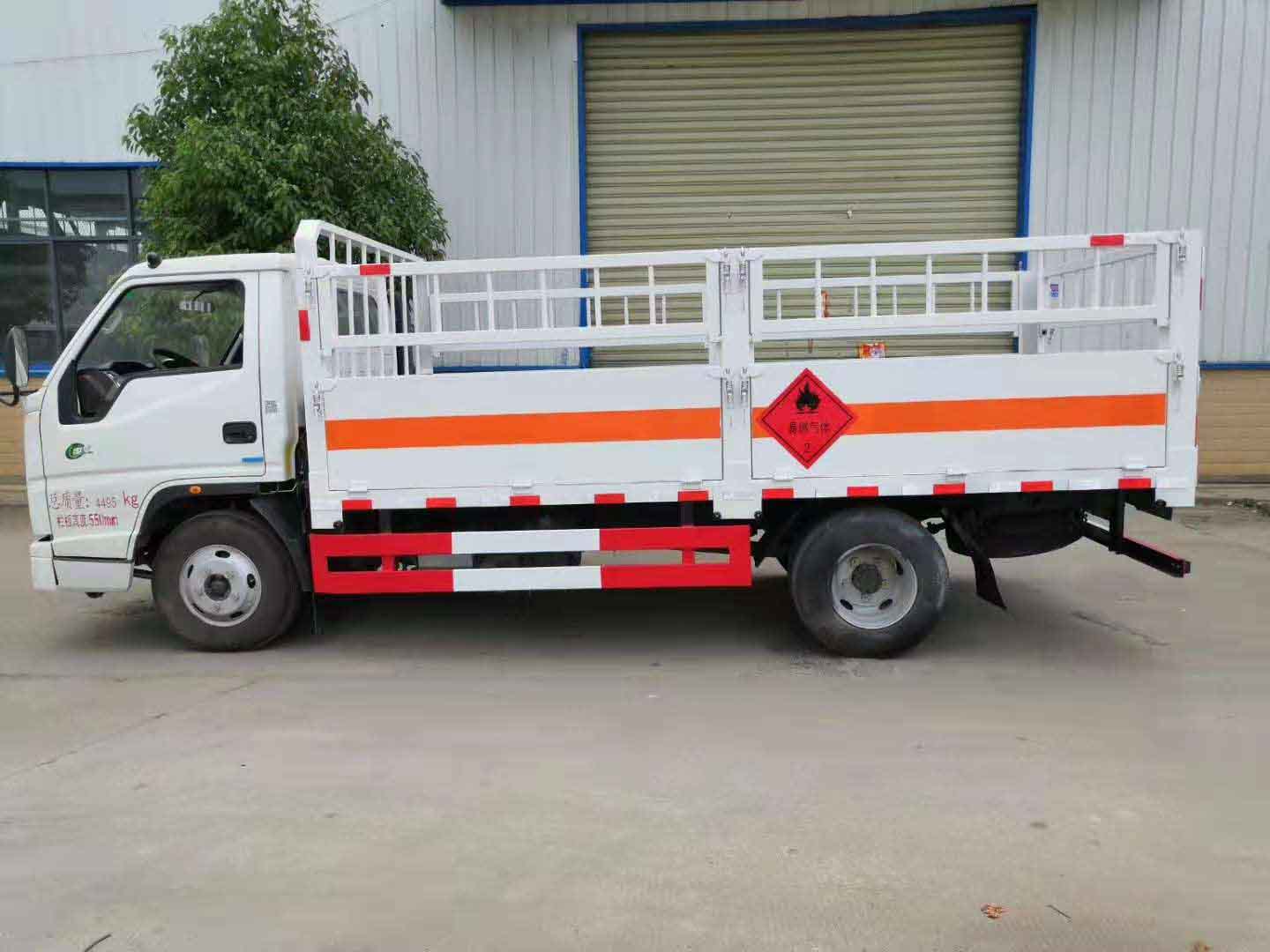 江鈴國六寬體氣瓶運輸車箱體外形為倉欄式,邊板為瓦愣式可活動,上部為花籃市可拆卸,底板為3mm鋼板上面鋪防靜電膠皮,滅火器2個,大梁靜電帶,嚴格按照國家危險品相關法規張貼危險品標識和反光標牌!(選裝高欄或低欄,選裝液壓尾板)。