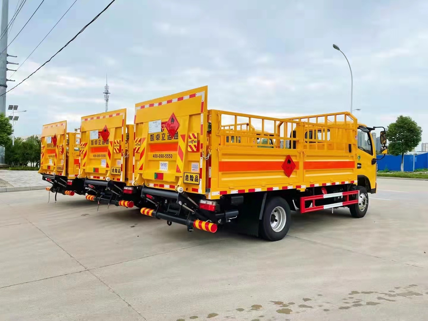 東風多利卡國六4米2氣瓶運輸車廂式欄板車結構,外厚度為1.1毫米厚度武鋼冷軋鋼板(或沖壓成瓦楞板,以公告為準),內加強“幾”字型加強梁,車體底板加強處理并做防靜電處理。車體的左側、右側,和后欄板栓鉤結構,可向下打開,方便上下貨物,車體為空曠式車型,大大減少了運輸物品因為狹窄空和強烈碰撞產生氣瓶爆炸的危險性,箱體外觀涂裝白色油漆,在欄板的中間位置粘貼橙色的;嚇藥,并在車體的左、右、后部粘貼“易燃氣體”或“不燃氣體”標識。駕駛室內部配備兩只滅火器,后杠處安裝防追尾事故的緩沖固定塊。此款車輛屬于國家規定的危險品二類危險品運輸車。