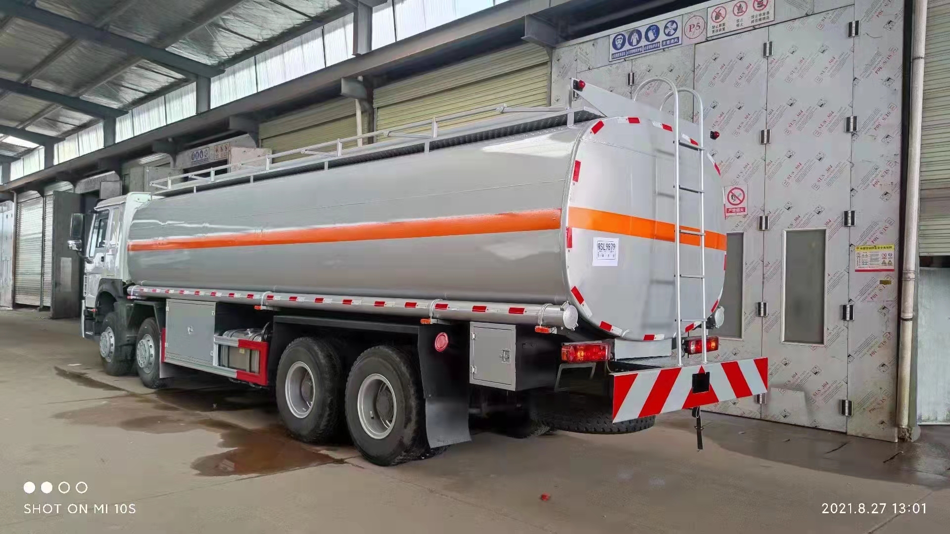 重汽豪沃40立方出口運油車罐體采用碳鋼Q235按GB18564.1制作,筒體厚度及封頭厚度符合18564.1設計,罐體容積12.65m3,罐體采用Q235B優質碳鋼板制作。帶一個鋁合金歐式罐口,一個鋁合金海底閥(帶海底閥新規), 80-60泵(右側3寸出口),一套油氣回收裝置,一套防溢漏報警裝置,一個下裝口(裝右側),15米自動回位卷盤,長穩大流量加油機,一個靜電線盤,罐頂升降護欄,一個工具箱,一個防火帽,帶堵蓋。金屬銀灰漆,貼反光線條及3號危險品標。5、底盤配置:2315/排半,B6.2NS6B230,法士特8JS95,295/80R22.5,4.5盤/10德納,250雙層大梁,動轉,離合助力,電動門窗中空鎖,空調,斷氣剎,排氣制動,ABS,空氣懸架,帶取力器,前碰撞預警。