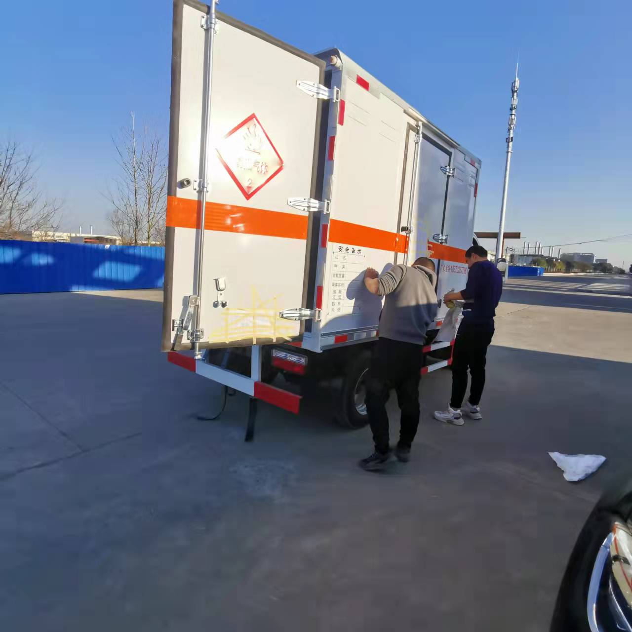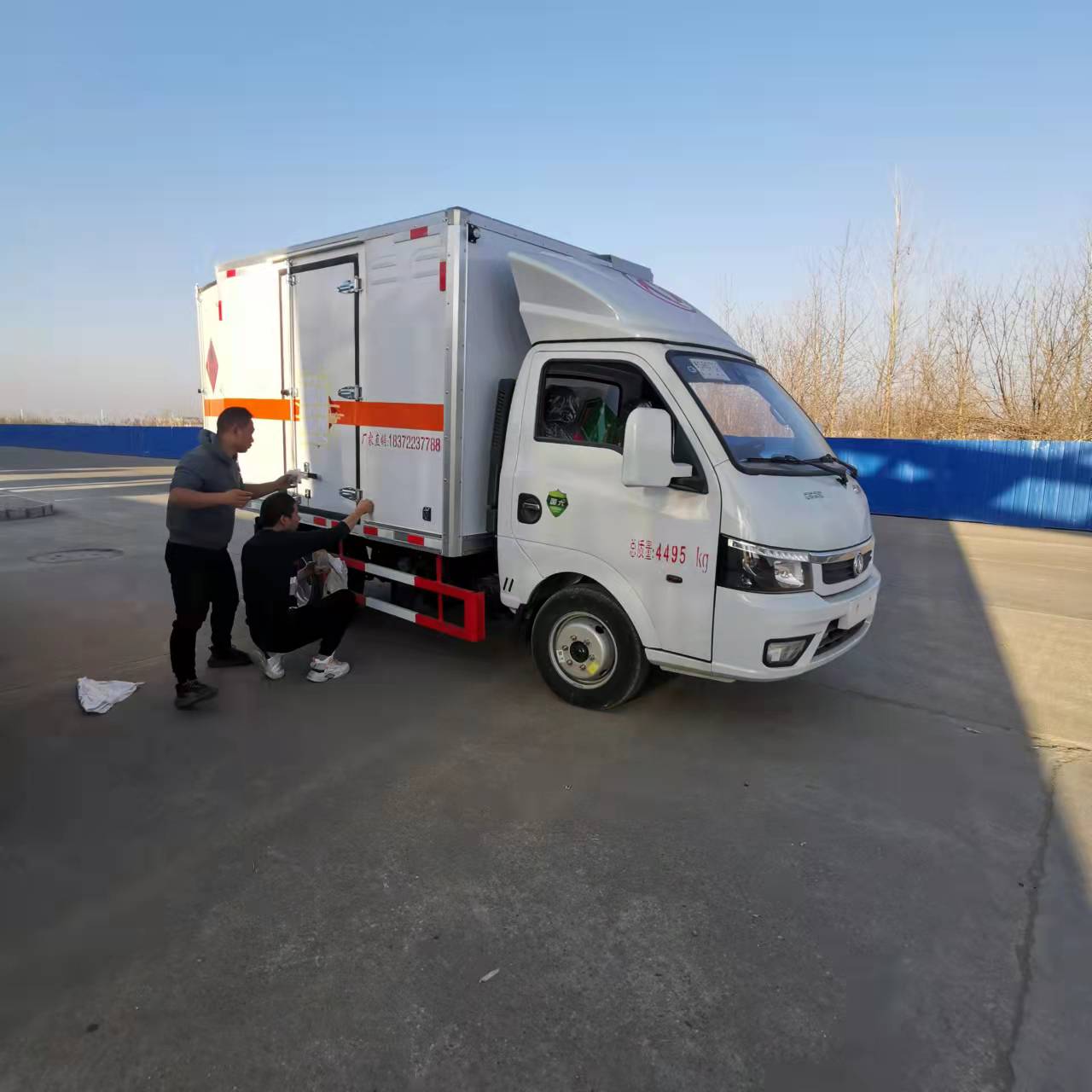 東風(fēng)途逸柴油2米6國六危險品車貨箱尺寸2600*1850*1750 ,整車尺寸4700*1995*2750,總質(zhì)量4495KG,白色.2人座,嚴(yán)格按照公告尺寸制作 。箱體采用復(fù)合結(jié)構(gòu)鉚接,帶一次性沖壓成型的百葉窗,內(nèi)飾為導(dǎo)電性能良好的合金板有透氣孔,內(nèi)襯為矩形管骨架牢靠穩(wěn)定,骨架內(nèi)部填充為透氣防潮阻燃的擠塑板。廂體外部四周鋁合金型材包邊,底板和車廂前下部鋪橡膠皮,后門雙開,右側(cè)單開門,內(nèi)部兩邊各安裝2排卡槽+10公分高的靜電膠皮,安裝煙霧報警器、防盜感應(yīng)器。車身附件靜電接地帶、滅火器、防火罩、危險品三角燈、橙色反光帶、CCC反射器、菱形標(biāo)志牌、危險品牌、安全告示齊全。
