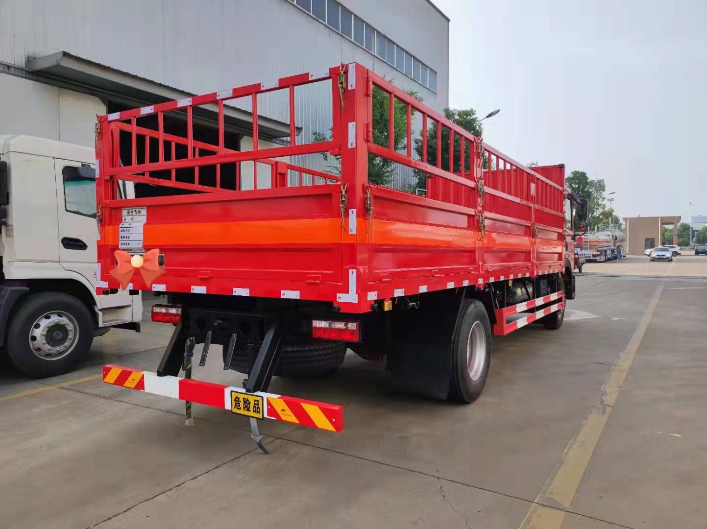 東風多利卡D9氣瓶運輸車整車尺寸:9000X2550X3020(mm),貨箱尺寸:6750X2350X600(mm),原廠危貨底盤5300軸距,駕駛室配置:6檔變速箱,帶ABS,前盤制動,限速器,排氣管前置,9.00R20輪胎,發(fā)動機:B6.2NS6B230,防飛濺,自動調(diào)整臂,空調(diào),廂體為金屬骨架結(jié)構(gòu),廂體生產(chǎn)工藝采用4mm底板,鋪靜電膠皮,高600mm的墻板,上側(cè)配可拆卸護欄。配備隨車工具。可原裝液壓尾板,車輛嚴格按照公告制作。