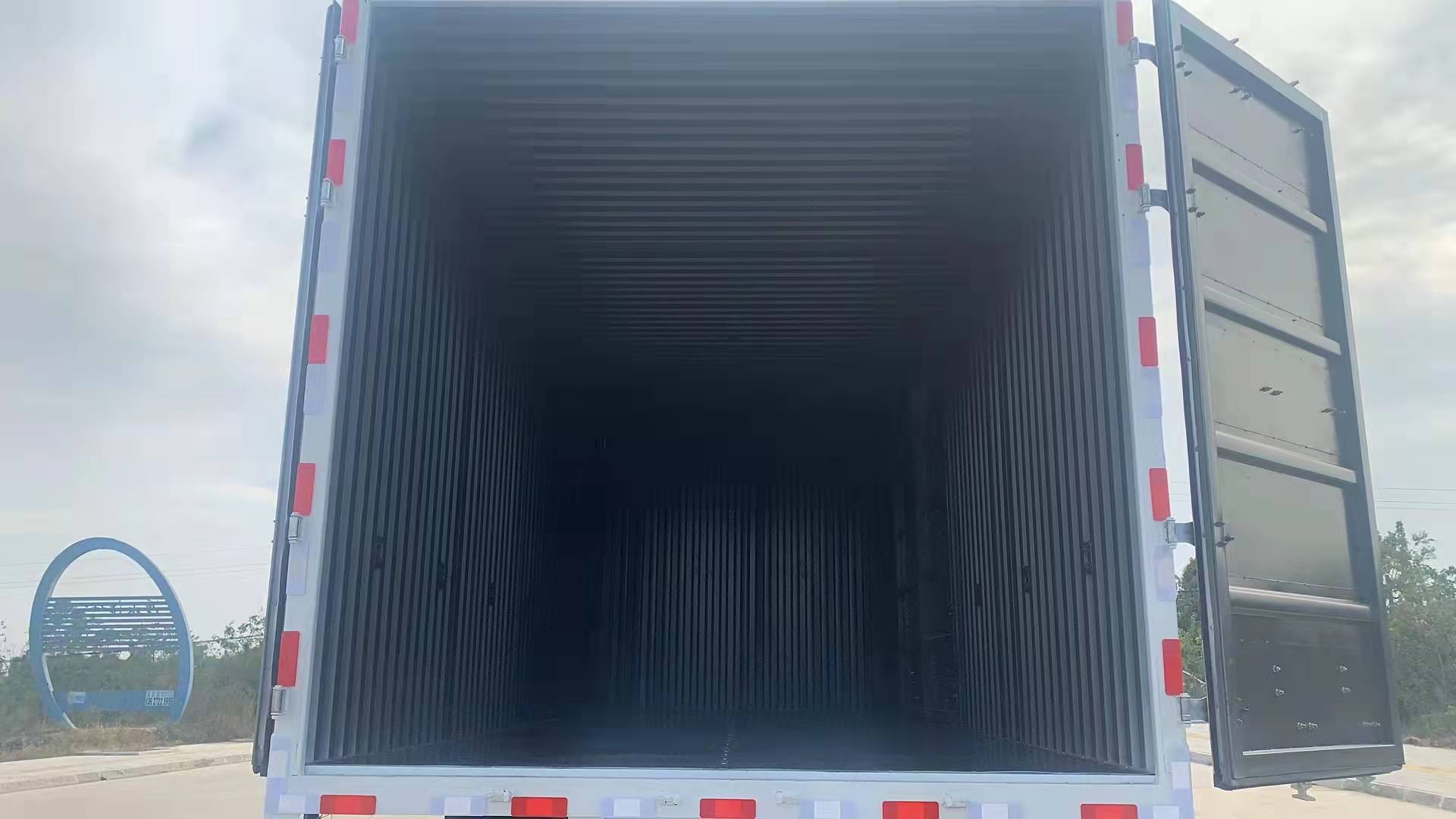 東風(fēng)D9國(guó)六單開瓦楞板危險(xiǎn)品車外板采用1.2mm厚冷軋鋼板壓瓦成型,底板采用4mm厚花紋板上鋪設(shè)防靜電膠皮,箱體右側(cè)對(duì)開門,后部設(shè)置對(duì)開門。箱體內(nèi)部?jī)蓚?cè)安裝捆綁貨物的臥環(huán),箱體內(nèi)部安裝煙霧報(bào)警器和防盜報(bào)警器。