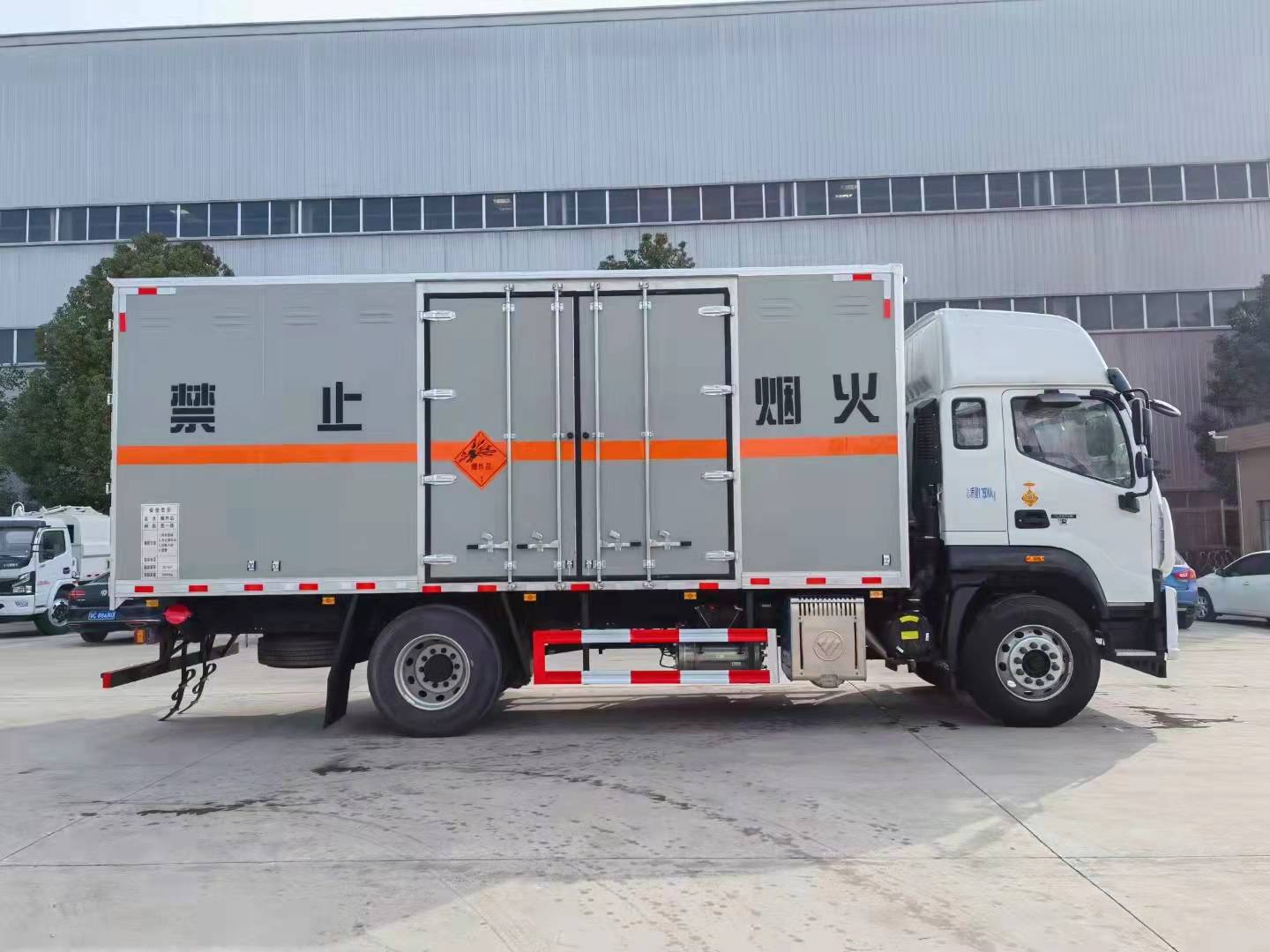 福田歐航國六6米8民爆物品運輸車漆面更光滑。外板采用的冷軋板折彎而成的瓦楞板,內(nèi)飾為導(dǎo)電性能良好的鋁平板有透氣孔,矩形骨架結(jié)構(gòu)內(nèi)部填充防潮阻燃擠朔板,復(fù)合加鉚合工藝。廂體四周鋁合金包邊及包角,車廂底板鋪設(shè)防靜電膠皮,廂體前鋪設(shè)防靜電膠皮。后部設(shè)置對開門,可選裝側(cè)門位置,廂體內(nèi)部兩側(cè)安裝捆綁貨物的臥環(huán)。廂體內(nèi)部安裝氣體感應(yīng)器及防盜報警器,車廂粘貼橙色放光帶,箱體粘貼 菱形告示牌,安全告示牌。