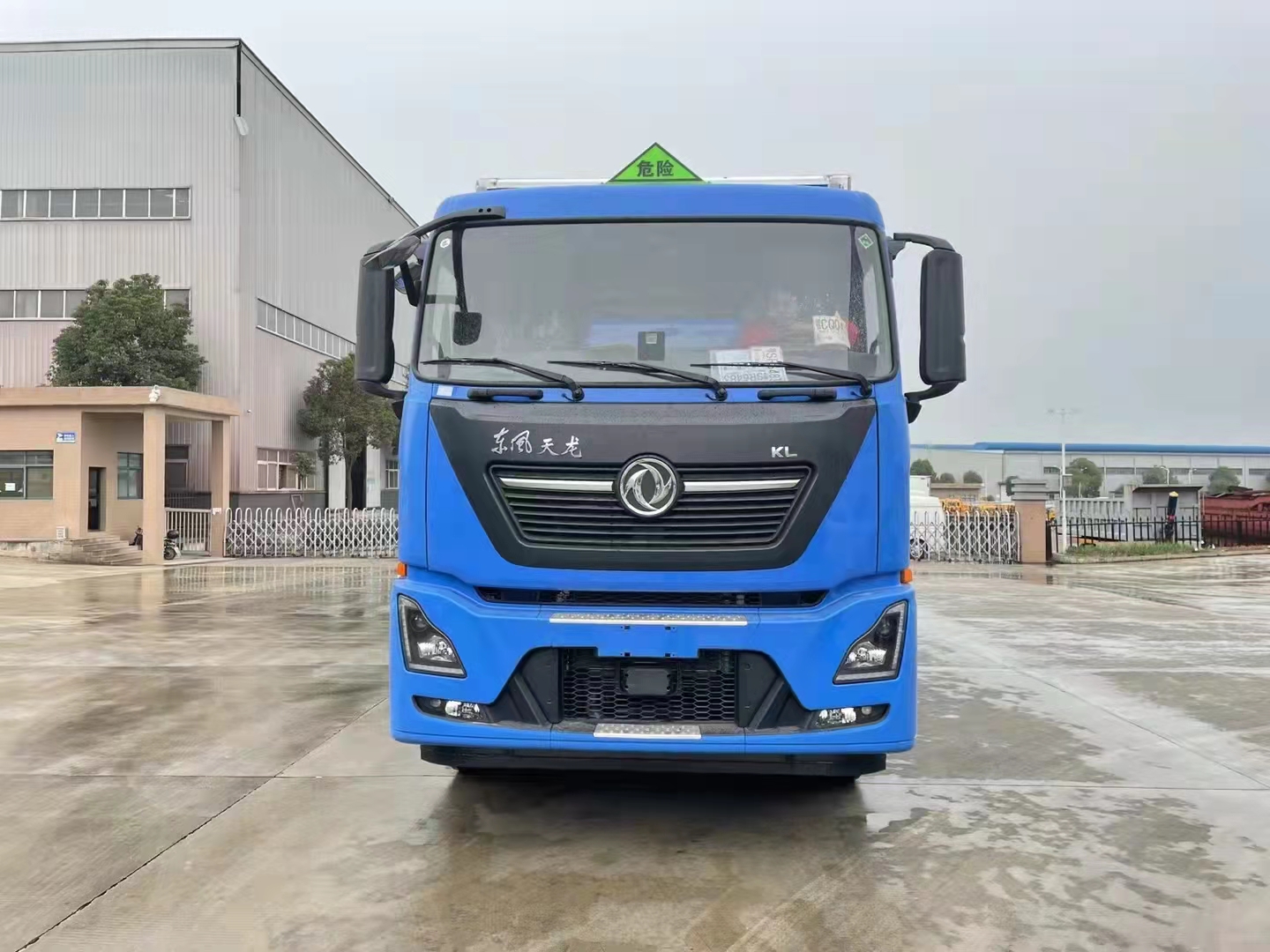東風天龍KL整車藍色前四后八危險品車采用東風天龍危險品車專用底盤,D320天龍KL駕駛室,龍擎DDi75E350-60發動機(沃爾沃技術),陜齒9JS135TA變速箱,前5.5噸,后10噸,1995+4500+1350mm軸距,295/80R22.5 18PR真空胎,鋁350L油箱,帶空調,電動玻璃,遙控鑰匙,行車記錄儀,氣囊座椅,前盤,后鼓,ECU限速,后橋空懸。帶EBS(電空制動系統),FCWS(防碰撞預警),LDWS(車道偏離預警),TPMS(前軸單臺胎壓監測),ESC(防側翻系統),EACS(駕駛室氣囊調節),AEBS(主動剎車系統)。