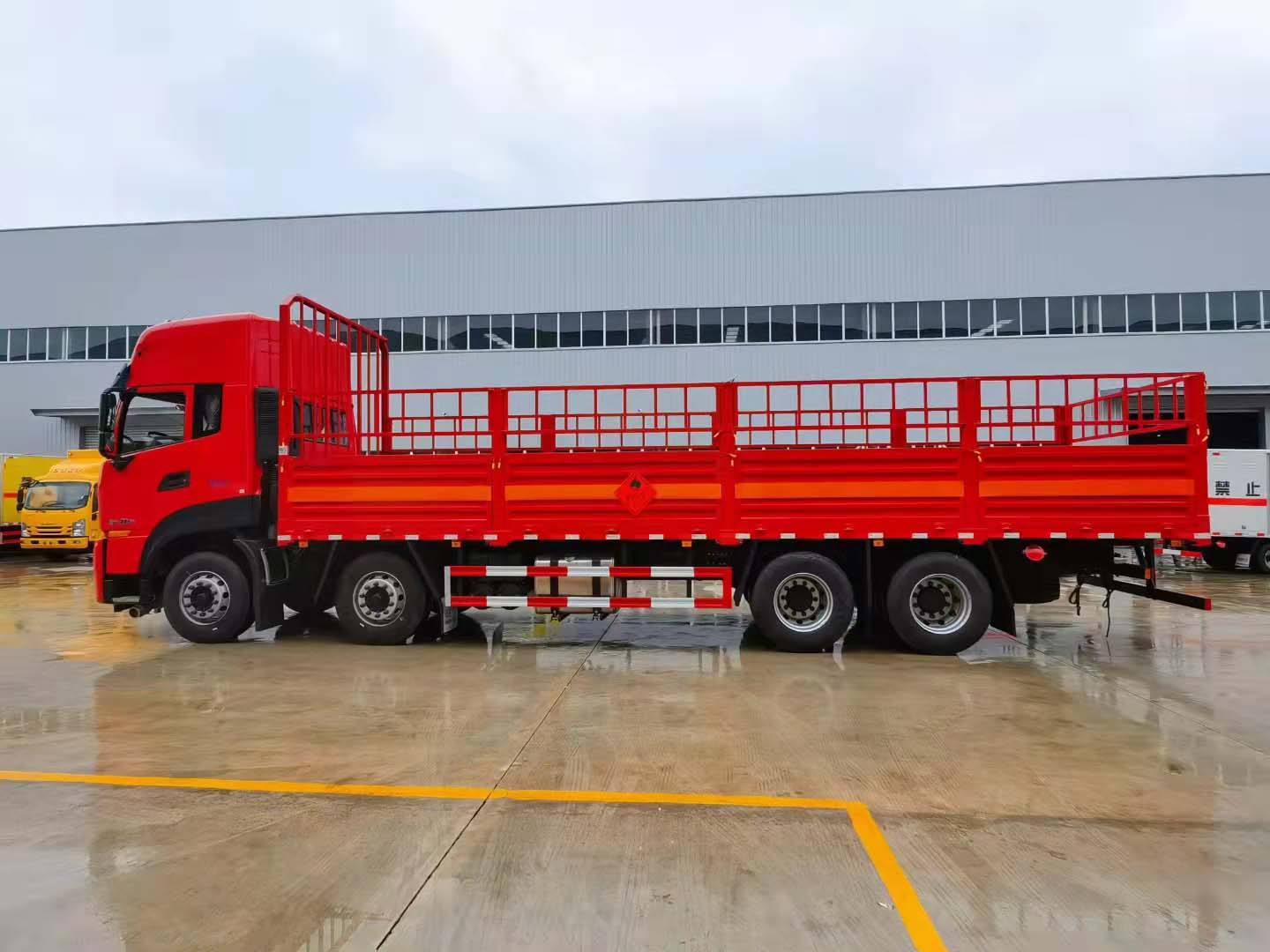 東風天龍前四后八KL國六氣瓶車采用的是可拆卸式 高欄,整車采用紅色更亮麗耀眼,貨箱尺寸可達9米4,帶液壓尾板,整車不超重,重點是該車匹配的是高頂雙臥駕駛室,危險品標配兩人,乘坐休息兩不誤。該車支持定制,可分期付款,歡迎各新老客戶來電咨詢訂購!