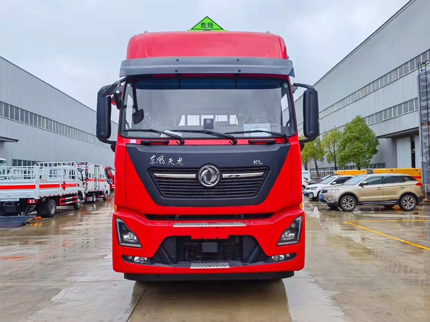 在安全性上,東風天龍KL全能版--散配款采用楔式制動改善制動性能,制動線性平順,提升制動安全;全方位配備智能安全系統,標配EBS+ESC電子穩定、LDWS車道偏離+FCWS前碰撞預警、環景影像、TPMS胎溫胎壓監測+轉向輪爆胎應急保護;此外該車型還選裝液緩、疲勞監測系統、BSD雙側盲區監測系統、增加轉向、倒車語音報警等其他安全輔助設施。