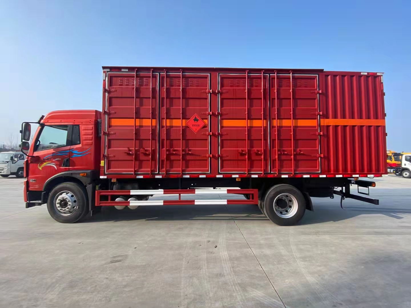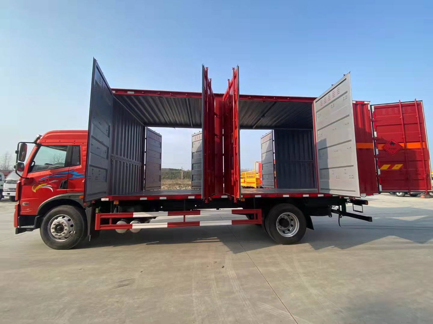 解放龍V國(guó)六帶左右雙開(kāi)側(cè)門(mén)危險(xiǎn)品車(chē)該車(chē)采用的是更方便的模式,讓您使用更便利!客戶也可以根據(jù)需要選擇單開(kāi)側(cè)門(mén)、單開(kāi)雙側(cè)門(mén)等多種方式,加裝液壓尾板整車(chē)不超重,歡迎各新老客戶來(lái)電咨詢(xún)訂購(gòu)!