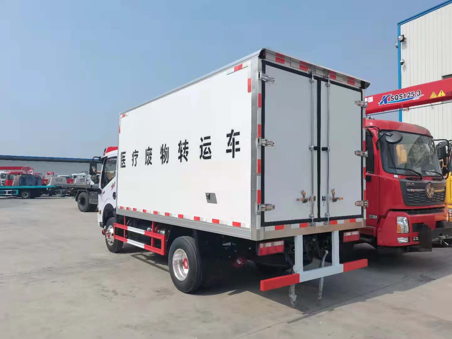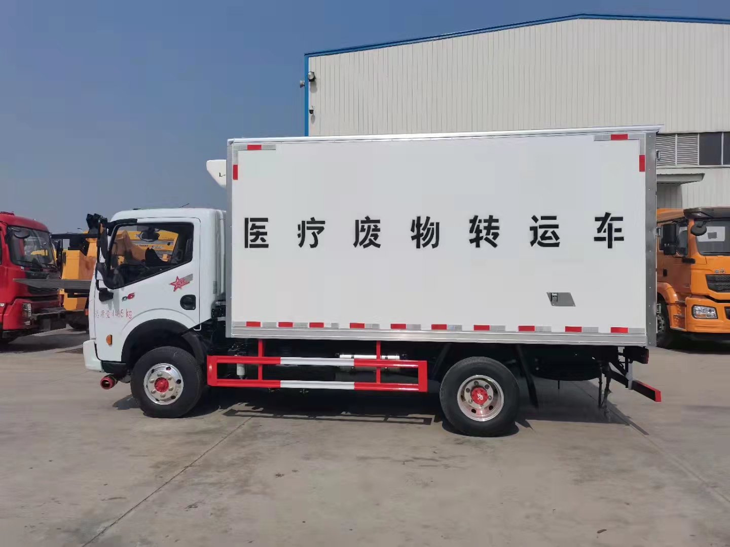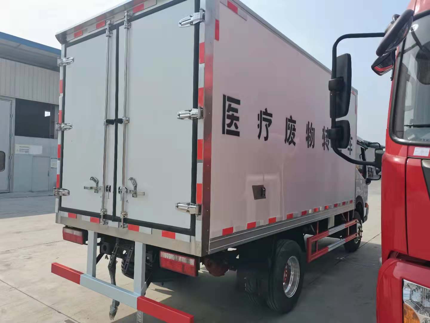 4、廂體外玻璃鋼內不銹鋼,中間填充高密度保溫材料(聚氨脂),后門為雙層密閉結構,并采用迷宮式封條,使車廂完全封閉。廂內安裝紫外線消毒燈,加裝自動消毒噴霧器。廂體兩側帶固定貨物卡槽。醫療廢物轉運車采用帶有“醫療廢物”標識。整車帶零下5度冷藏機組。