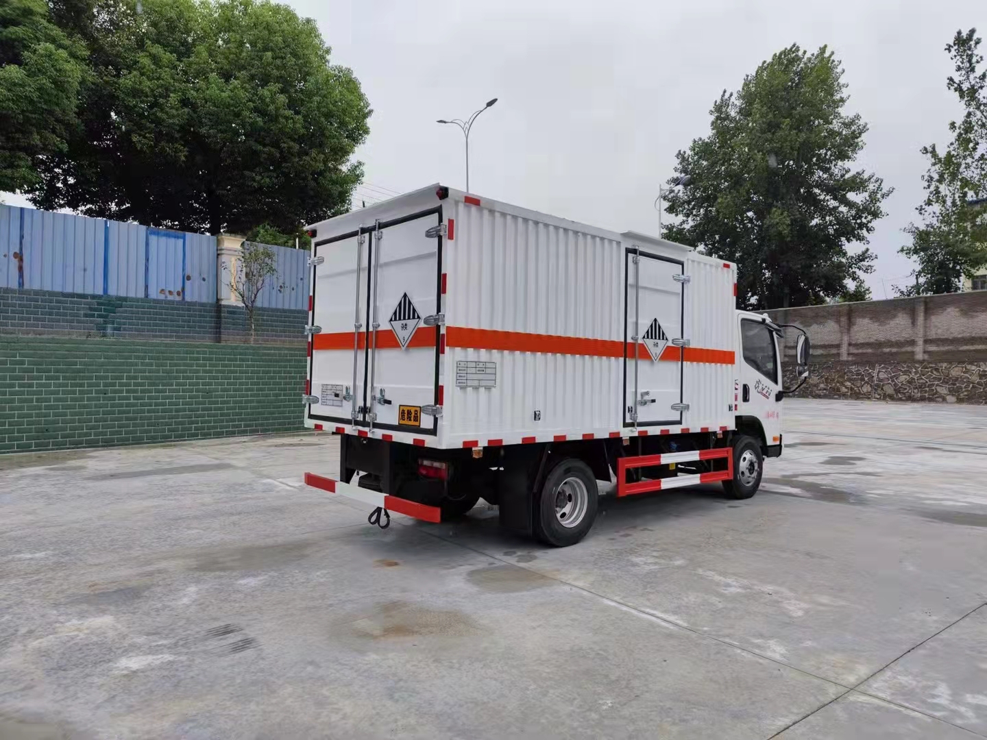 解放虎V國六瓦楞板藍(lán)牌危險(xiǎn)品車采用的解放虎V濰柴130馬力發(fā)動(dòng)機(jī),專門針對(duì)二類易燃?xì)怏w廂式運(yùn)輸,采用的是多功能方向盤,空調(diào)+電動(dòng)門窗+中控鎖,80L鋁合金/錫柴為120L油箱,20L尿素箱/錫柴為16L,7.00R16真空胎,后處理器前置+排氣火花熄滅器+前盤后鼓制動(dòng)器+限速79KM/H,北斗+GPRS行車記錄儀,爆胎應(yīng)急安全裝置,帶靜電拖地帶,LDW+FCW。原廠危險(xiǎn)品專用底盤。