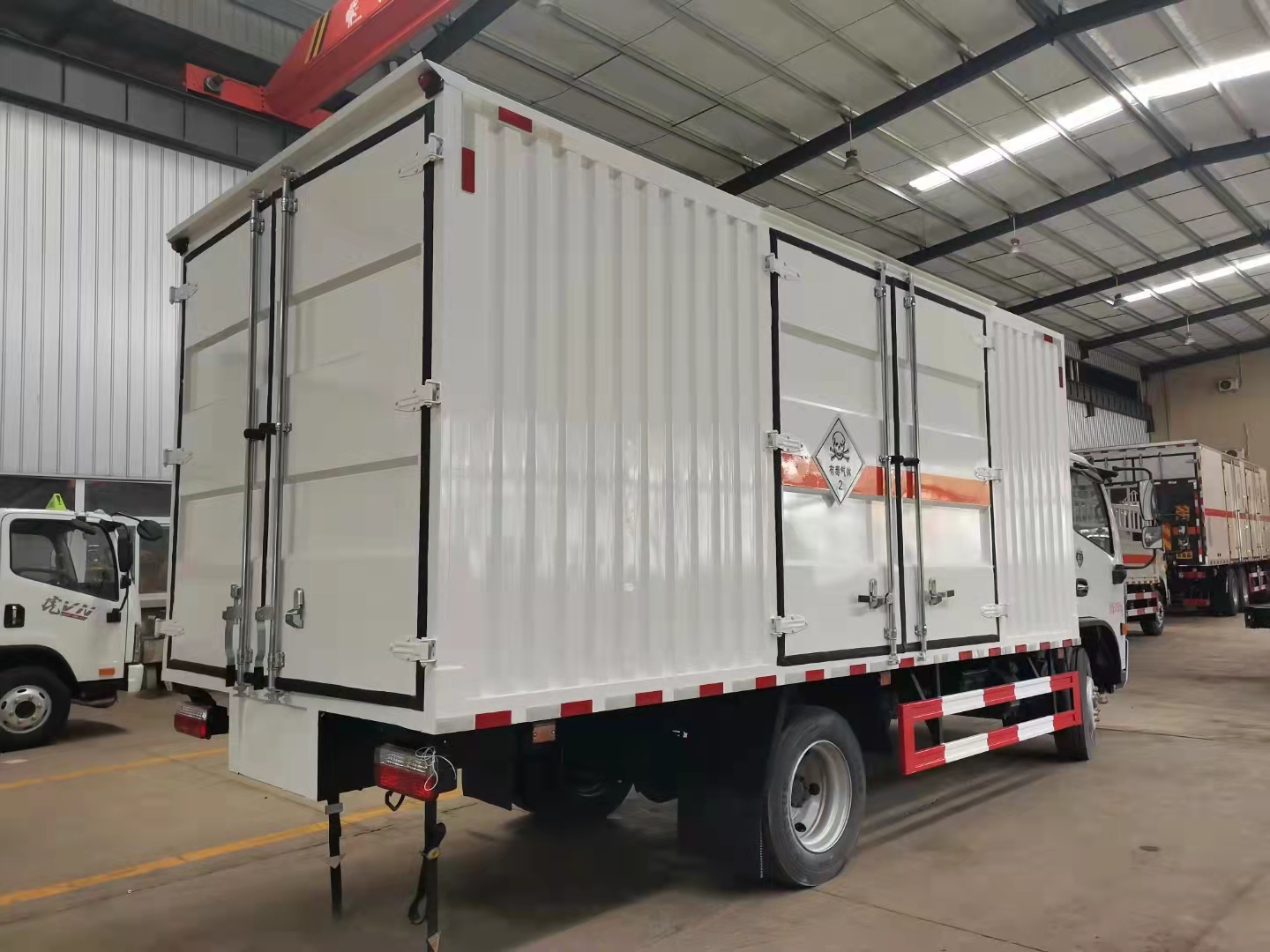 東風福瑞卡國六毒性氣體廂式車整車型號:ZLC5100XDQE6,采用東風福瑞卡駕駛室,3600mm軸距,云內150馬力發動機,萬里揚6檔箱。整車尺寸:7050*2450*3270mm,廂體尺寸:5150*2300*2100mm。帶原廠空調,電動門窗、中控鎖、遙控鑰匙,帶多功能方向盤、斷氣剎,帶LED日間行車燈,符合新法規雙預警危險品專用底盤,80L鐵油箱!