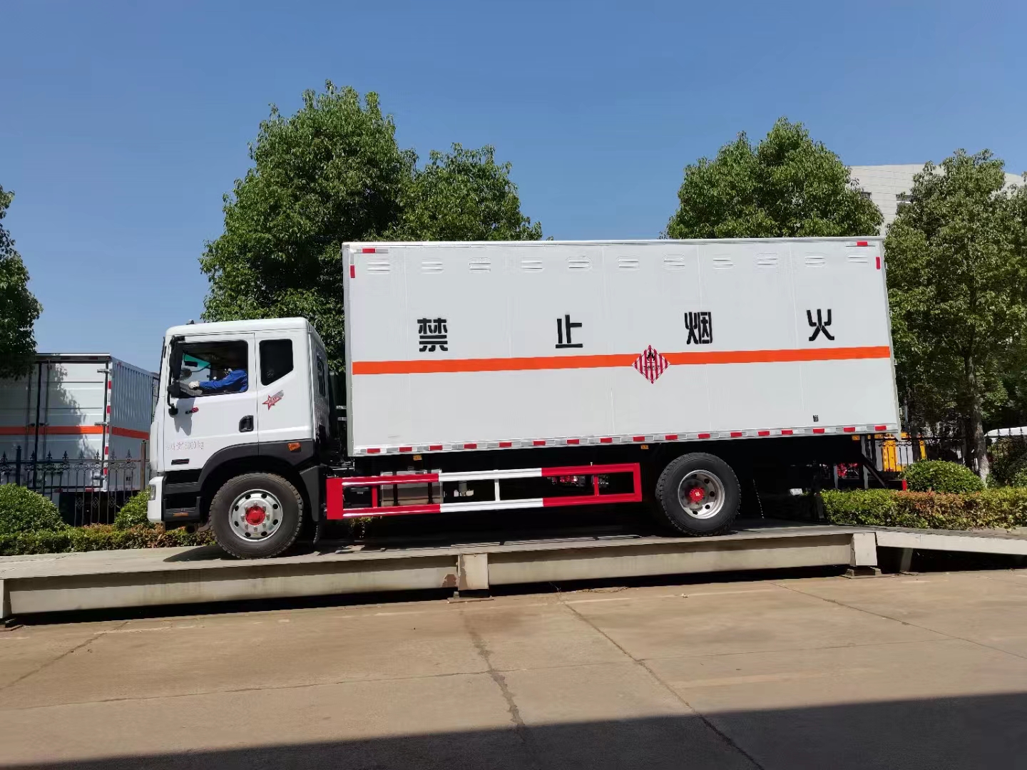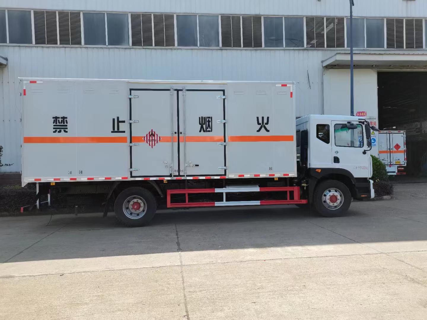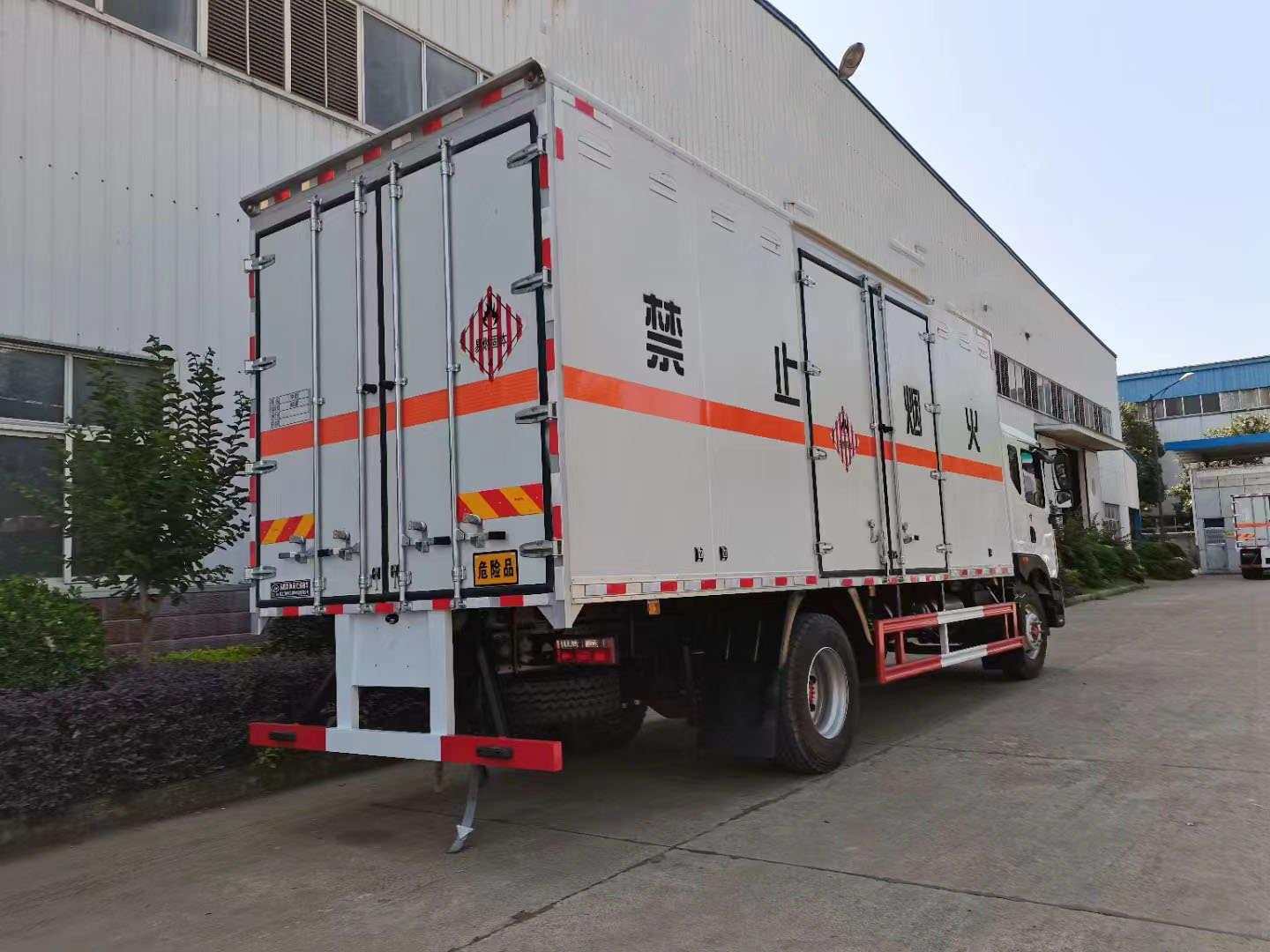 東風D9國六6.8米易燃固體廂式運輸車采用的是專用的箱體,防阻燃防靜電,底板帶靜電膠皮,車廂采用的是烤漆板5年不生銹、不掉漆、不變色、平整度高,箱體檔次升級,所有門桿及合頁全部采用的是熱鍍鋅材質。陳采用的是三元乙丙一次性成型無接縫密封條進行密封,耐老化、耐化學作用,更美觀。箱體骨架全部采用的是鍍鋅矩形管,不生銹壽命長,箱體底板采用無廢料拼接,受力均勻,不滲漏變形。底板采用槽鋼作支撐,承載力好,不變形。
