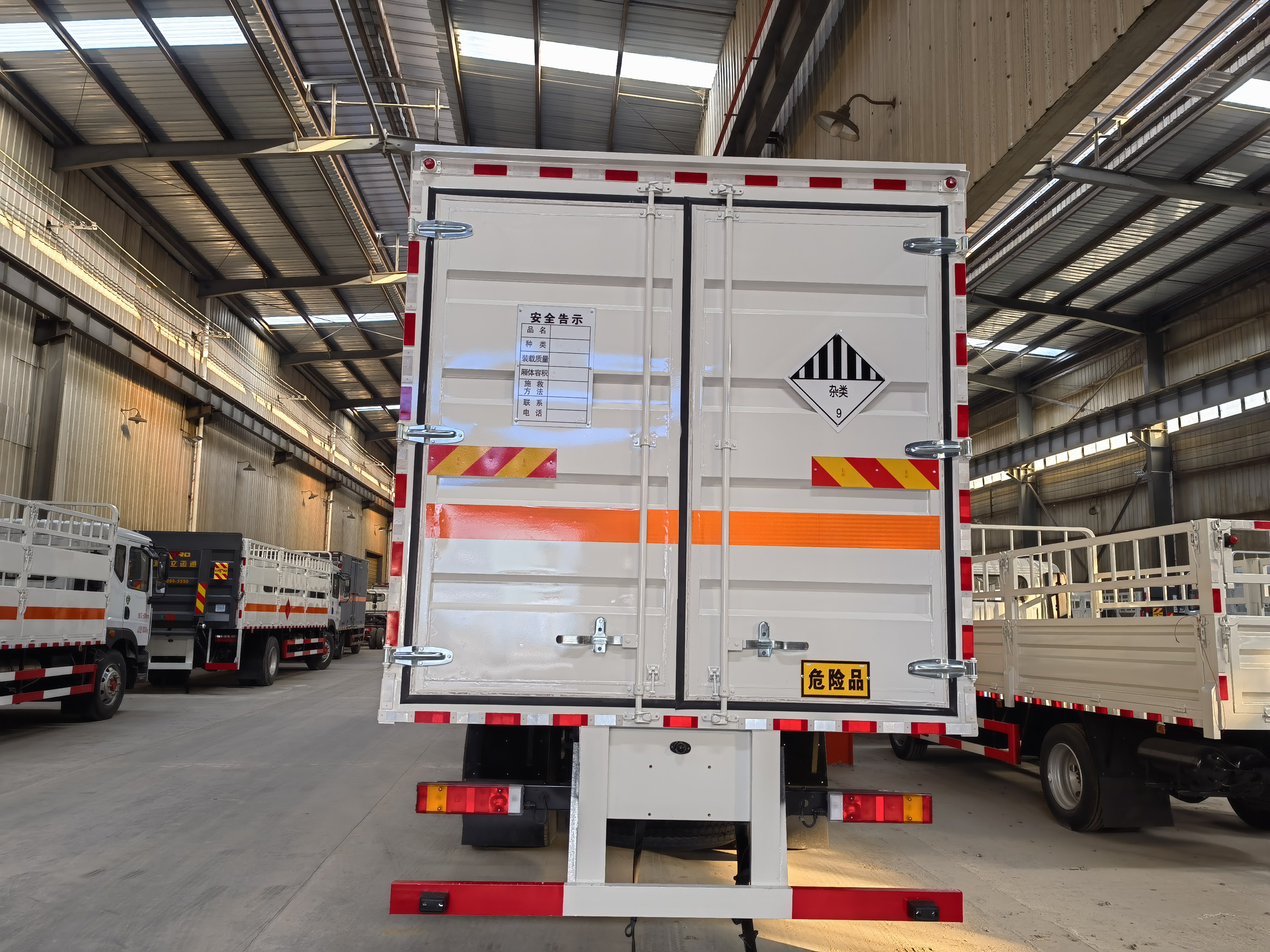 6米8東風天錦毒性氣體運輸車箱體容積大,為了方便裝卸貨物,該車箱體頂部可開啟,一般為了固定貨物,箱體采用的都是與瓶裝氣體高度差不多的高度,這樣為了更好地避免瓶不在車廂晃動,造成不必要的損失。該車箱體右側可選多處側門,左右均可開門。
