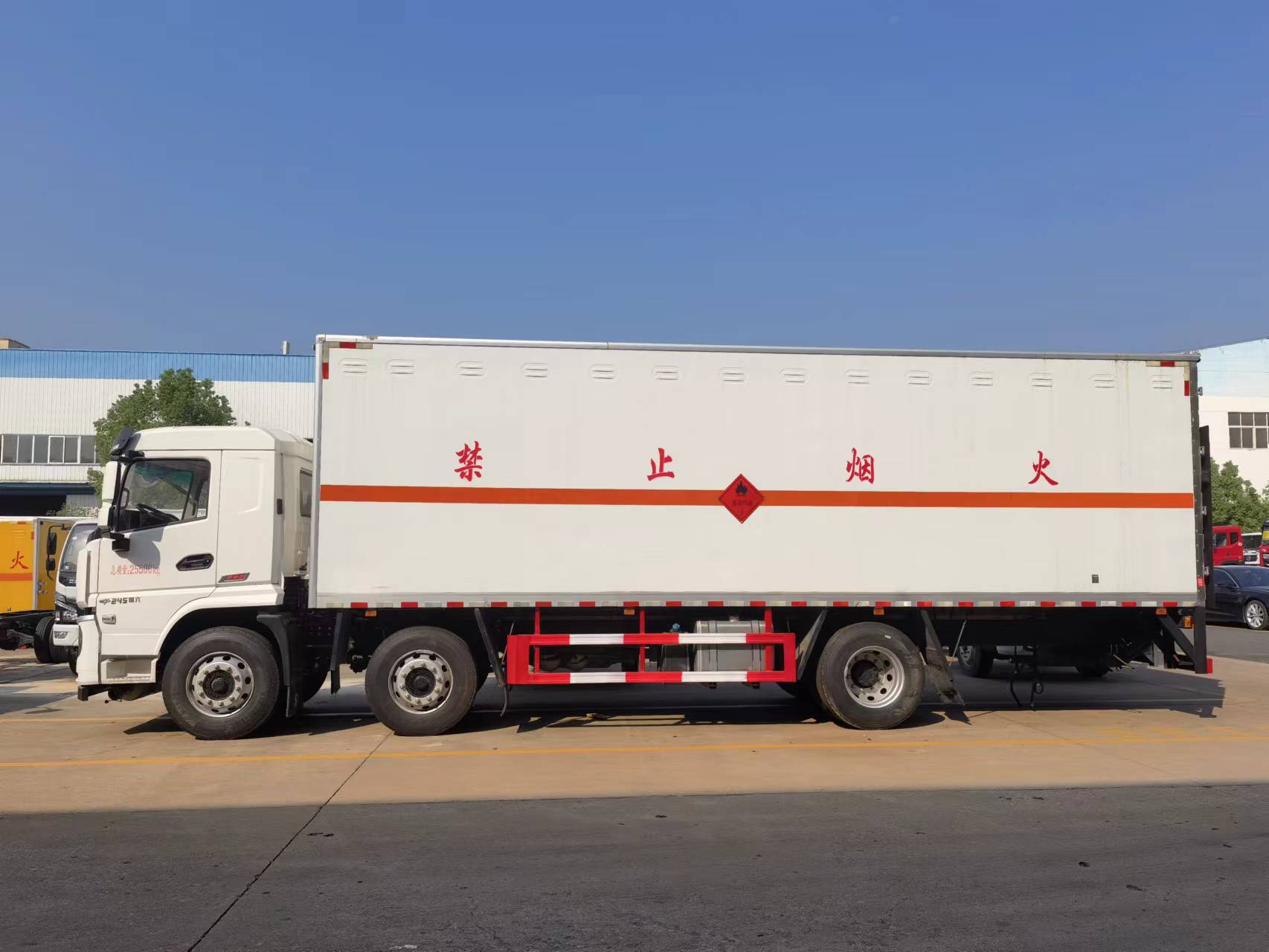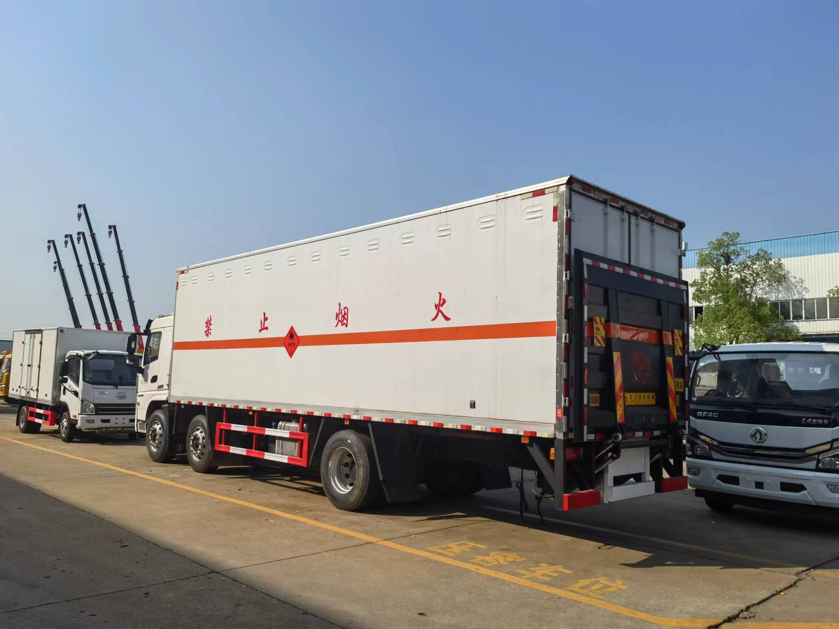 陜汽三軸國六9米6危險品車板采用1.2MM厚冷軋板有一次沖壓成型的百葉窗,內飾為導電性能良好的鋁板有透氣孔,內襯為矩形管骨架牢靠穩定,內部填充為透氣防潮阻燃的擠塑板,四種材料經過現代工藝復合而成。內部有固定貨物的防撞護板,該車配有車載專用煙霧報警器及后門防盜器,有靜電帶、滅火器、防火罩。整車國標反光標示及警告標志。