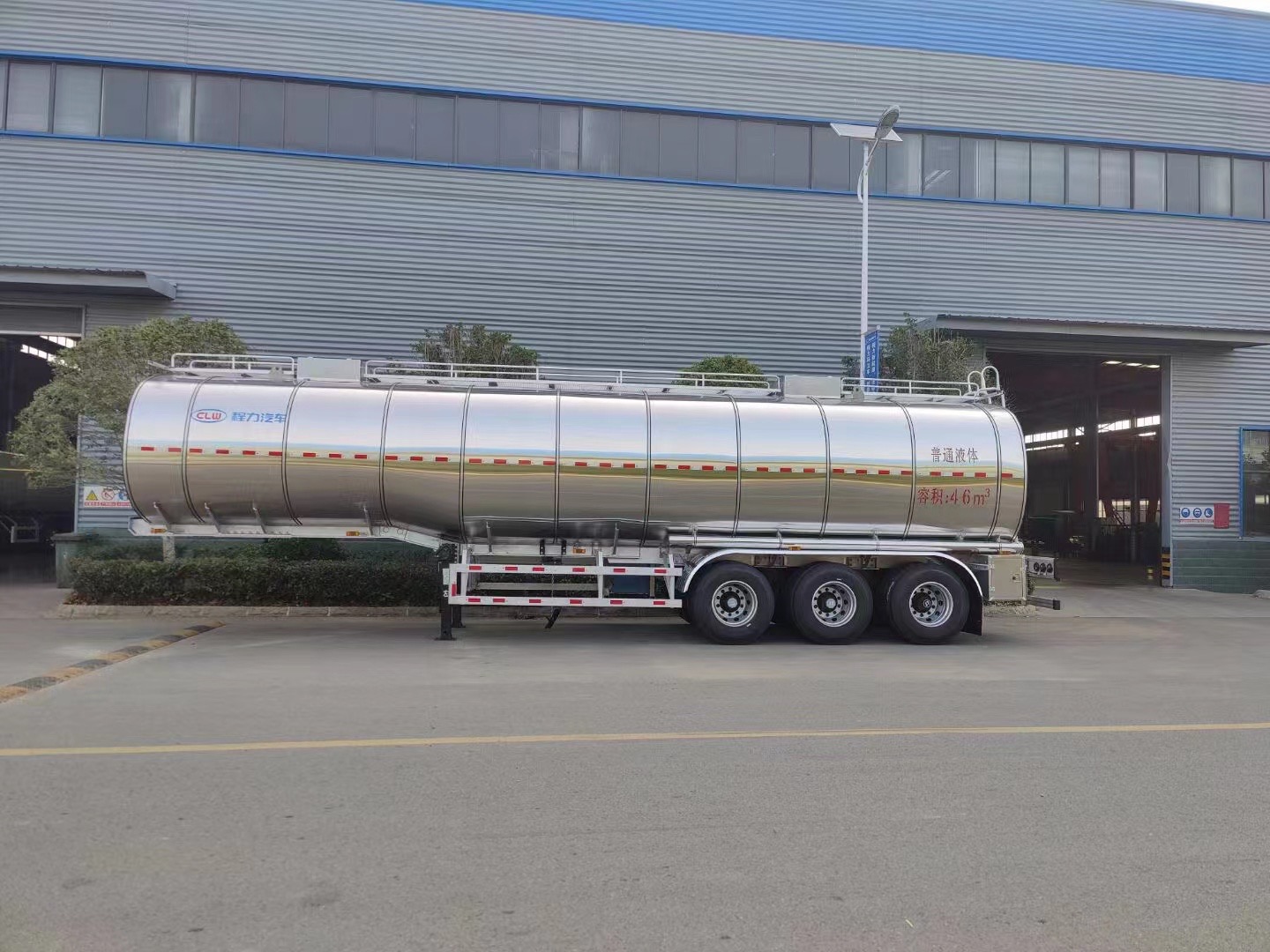46方鋁合金普通液體運輸半掛車上裝內罐容積:46方,采用5182鋁合金材質制作,罐體5mm,隔板:5mm,封頭6mm,外保溫層厚度50mm,外包鏡面不銹鋼,帶六爪快開罐口(或者歐標罐口),帶后尾部左右自流,選裝海底閥,選裝加熱管,底架配置:3軸13噸廣東富華橋,兩軸帶ABS,12條12.00R22.5真空胎配普通鋼圈,16噸剎車片,50牽引銷,28噸單動支腿,其他按廠標配。
