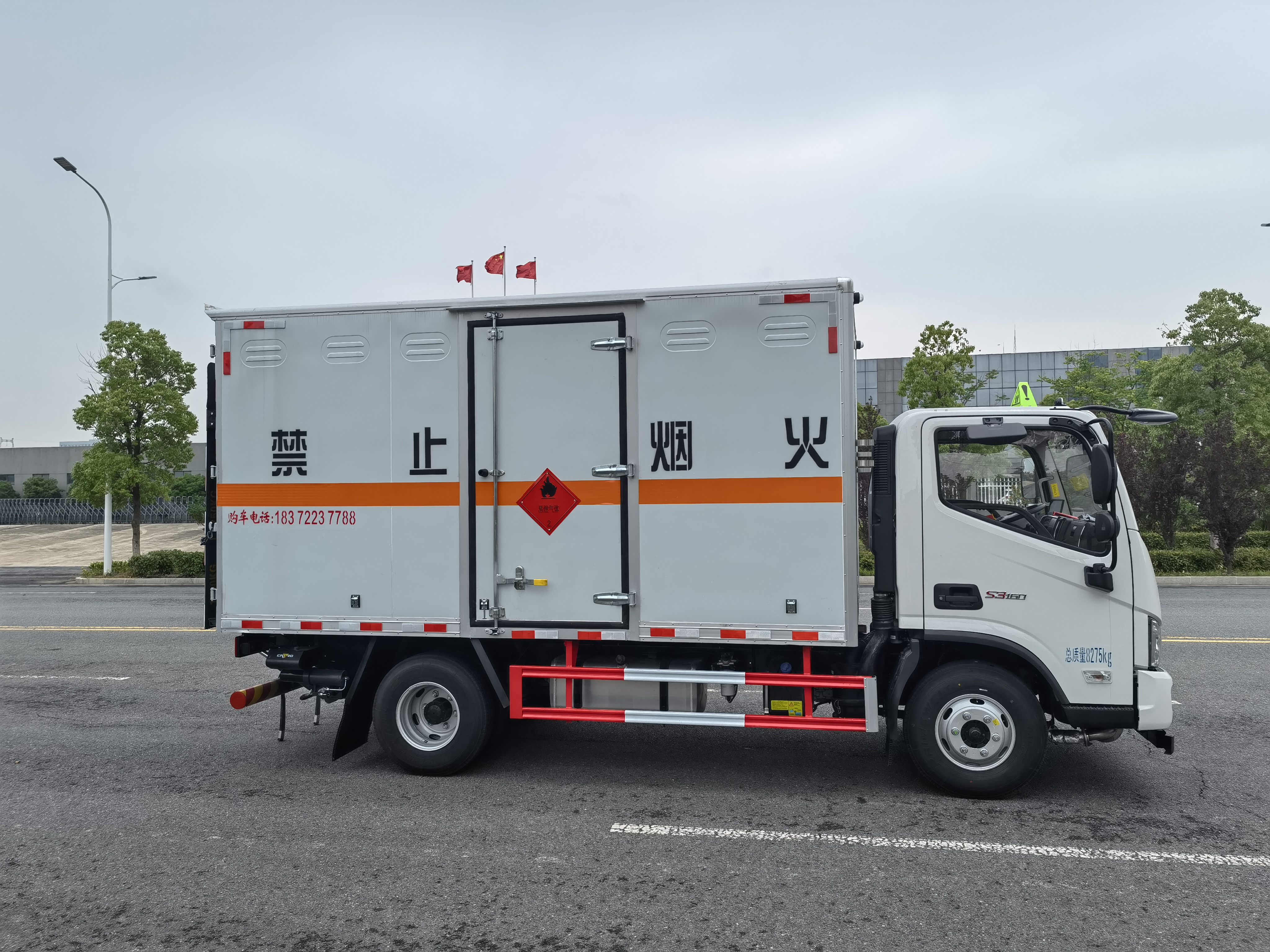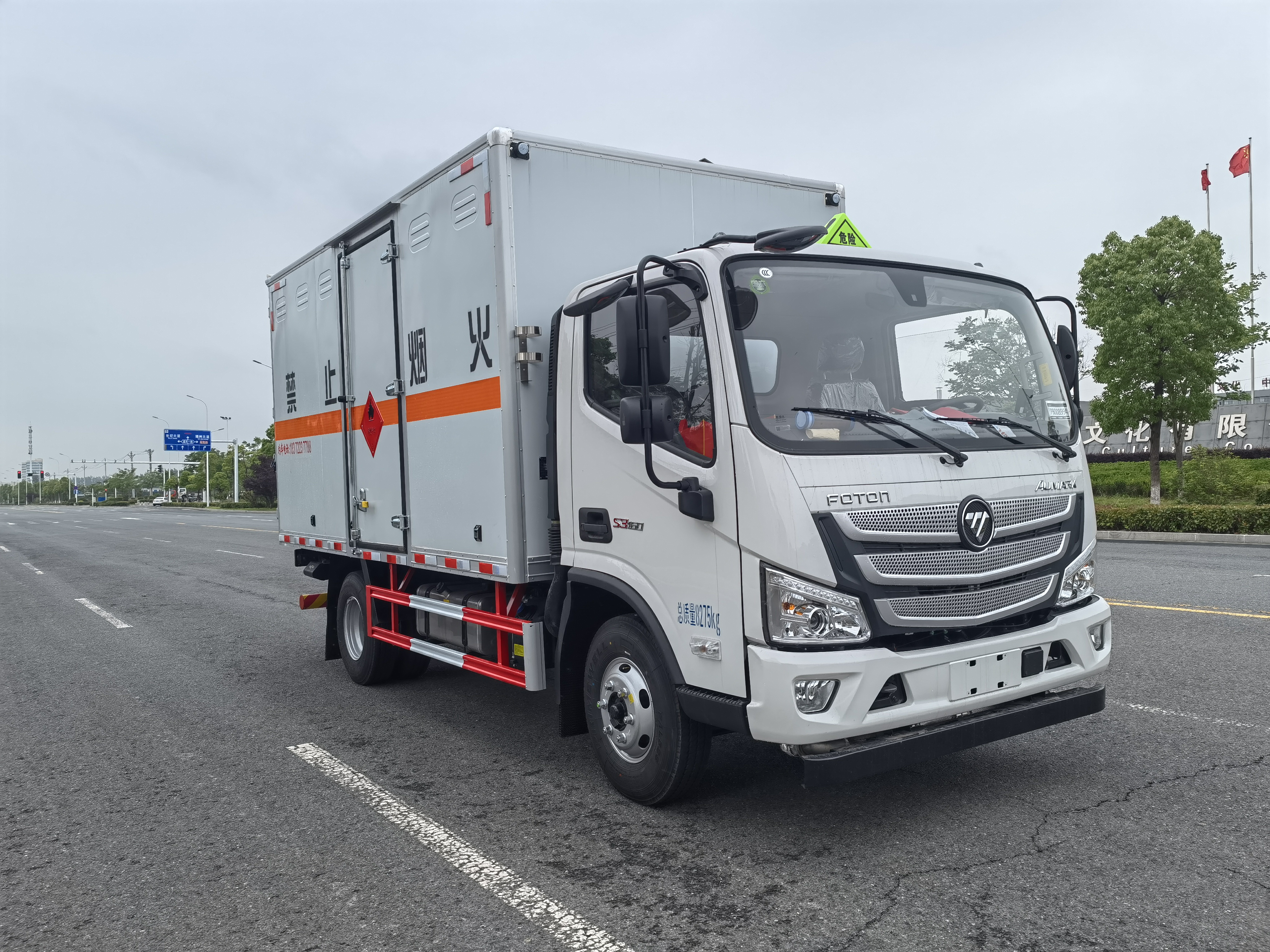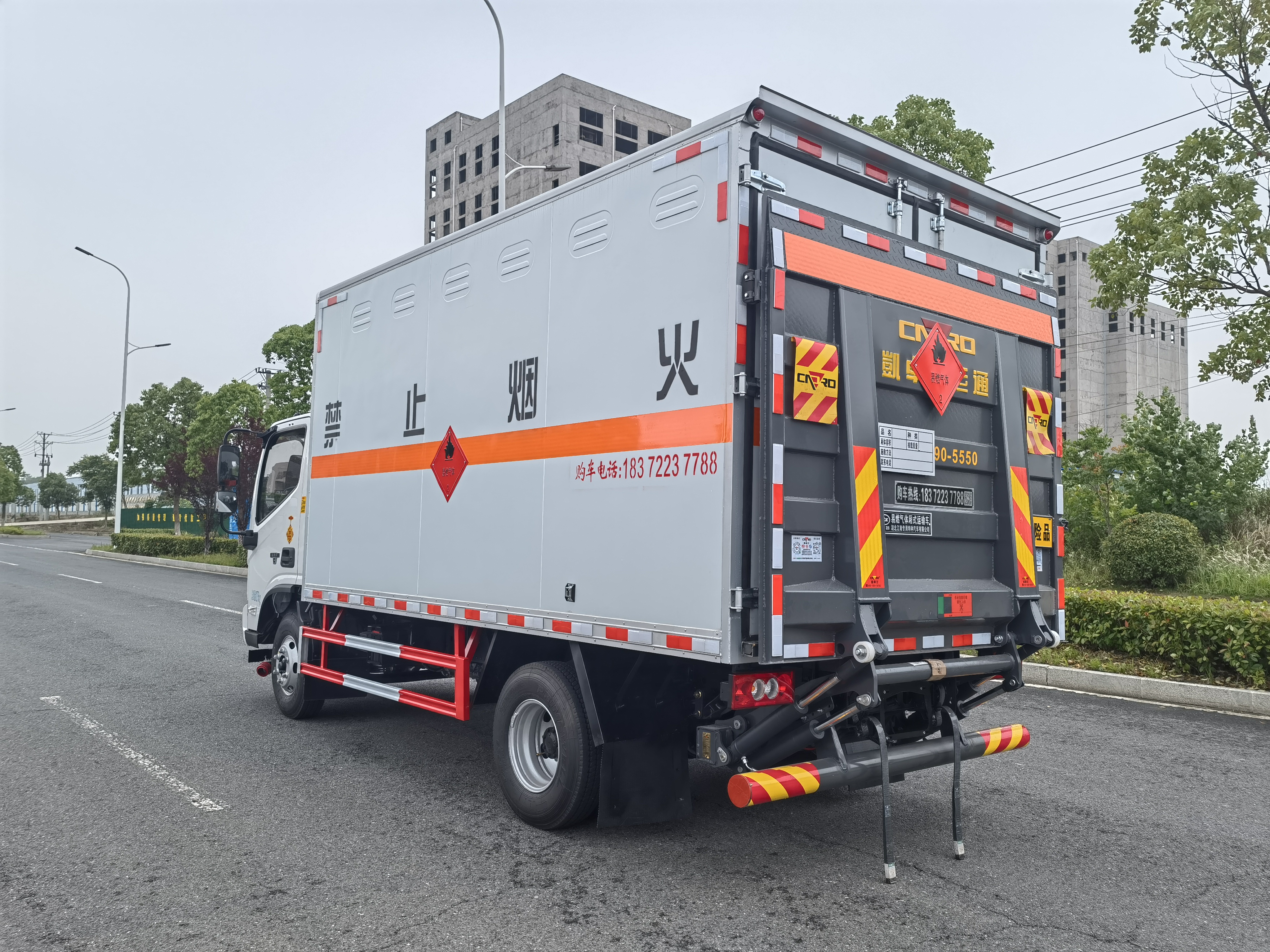 福田歐馬可4米2黃牌帶尾板危險品車箱體為雙層金屬結構,外板采用烤漆板帶百葉窗,內飾為導電性能良好的鋁平板有透氣孔,中間為矩形骨架結構內部填充防火阻燃材料,復合加鉚合工藝。廂體四周鋁合金包邊及包角。車廂底板上方鋪設防靜電膠皮,廂體內前臉50公分高鋪設防靜電膠皮。右側前開隔斷側門,整車尾部設置對開門,廂體內部兩側安裝捆綁貨物的臥環。廂體內部安裝煙霧報警器,門上安裝防盜報警感應器。