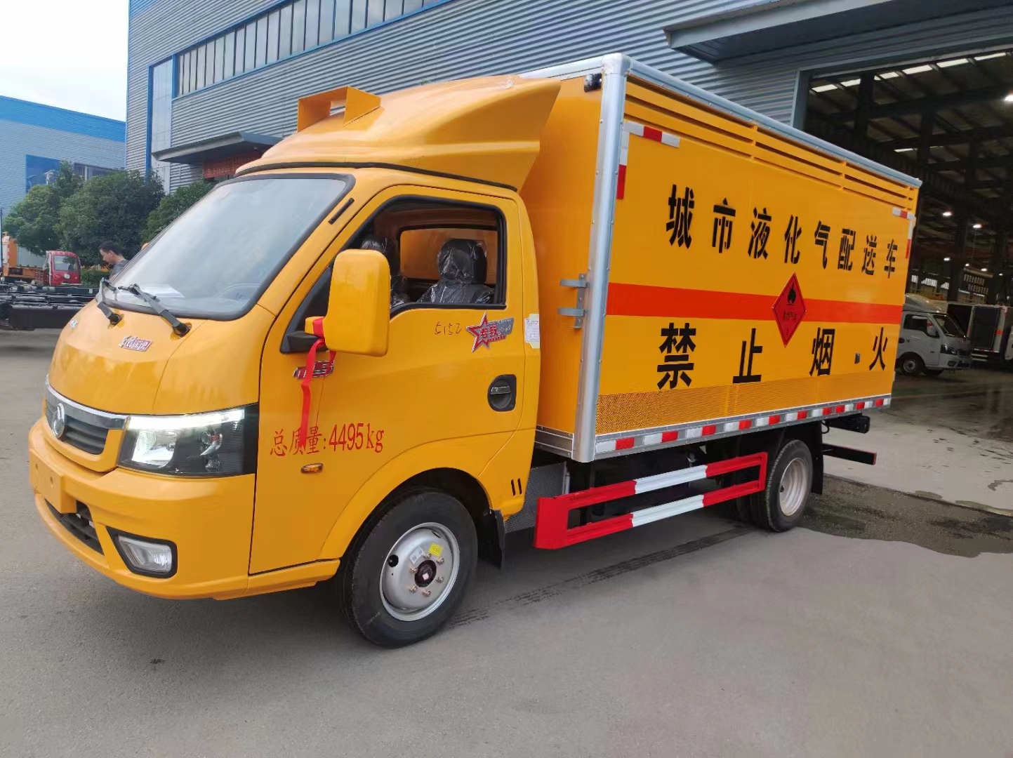 為了統一管理,該車匹配有定制的顏色,尤其是液化氣瓶配送都采用的是定制全部工程黃,讓運輸的過程能一眼明示。采用的是外冷軋板內鋁板中間夾阻燃材料,帶中開側門,尾部帶后雙開門,裝卸貨方便。為了讓貨物在箱體內流通更方便,該車貨箱全部采用的是上下透氣孔結構,更安全。