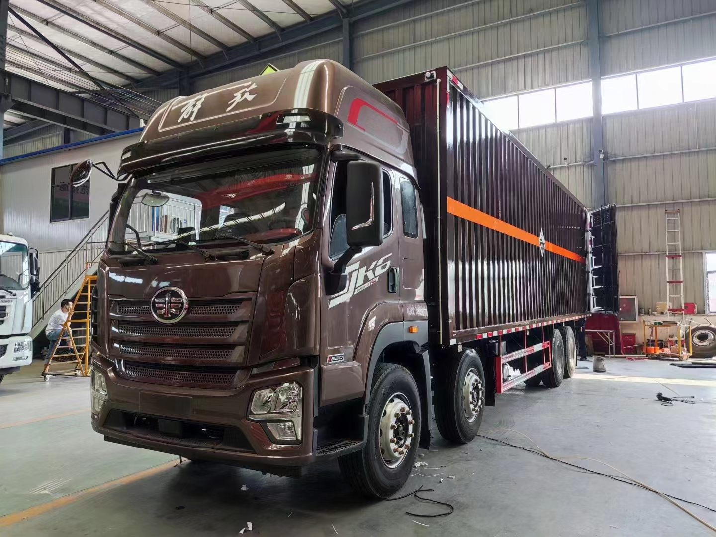 解放高頂雙臥前四后八腐蝕類廂式危險品車總質量32T,額定載質量20T,箱體尺寸:9650×2450/2400/2380×2600/2400,與其他車型相比的話,該車采用大柴350馬力發動機,一汽10檔變速箱,1900+4500+1350mm軸距,長軸距車型不用擔心后懸長車輛翹頭的問題。295/80R22.5輪胎,橫截面大車輛承載力強,帶取力器,前盤后楔制動器,板簧3/3/2+-/2+-,2氣囊,帶進口ECAS,電控氣囊懸掛,二軸帶橫向穩定桿,空氣彈簧座椅,帶中間座椅,電動門窗,電動后視鏡,電動舉升、爆胎應急裝置、有前碰撞預警+有車道偏離系統、T-BOX在北方很多人喜歡用解放的車型,主要在于車輛的使用性能更高端,配置更齊全。為了讓車主能享受到經濟實惠,又能讓車輛耐用。該車全部采用的是烤漆噴粉工藝,車輛油漆不會容易風化,外觀看起來更協調,尤其是棕色,外觀很低調,車輛臟不容易看出來。