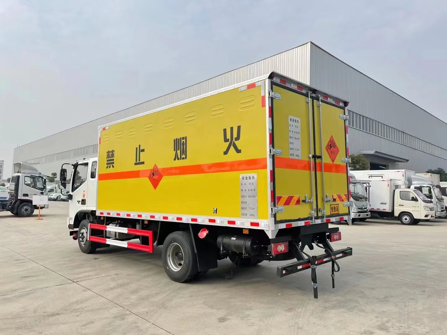 福田歐馬可排半5噸爆破器材運輸車復合廂體結(jié)構(gòu):外板采用免漆鋼板一次性沖壓成型的百葉窗,內(nèi)飾為導電性能良好的合金板有透氣孔,內(nèi)襯為矩形管骨架牢靠穩(wěn)定,骨架內(nèi)部填充為透氣防潮阻燃的擠塑板。廂體外部四周鋁合金型材包邊,底板和車廂前下部鋪橡膠皮,后門雙開,右側(cè)選裝側(cè)開門,內(nèi)部安裝固定貨物的臥環(huán)或腰欄,安裝煙霧報警器、防盜感應器。車身附件靜電接地帶、滅火器、防火罩、危險品三角燈、橙色反光帶、CCC反射板。