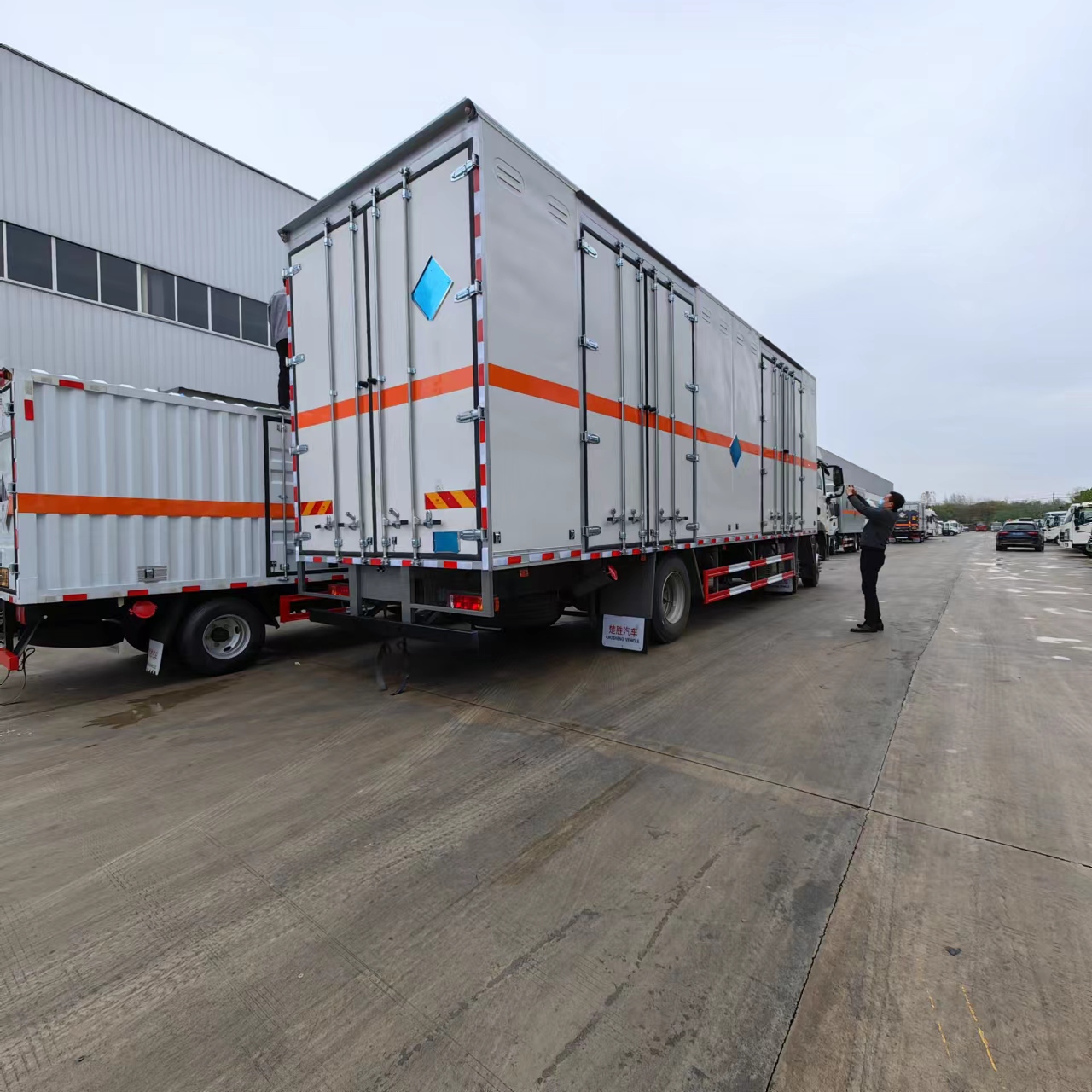 重汽豪沃9米6三軸爆破器材運輸車選用的是我司專用危險品車底盤,可選濰柴310馬力或250馬力發動機,匹配有中控鎖、電動門窗、原廠空調,寬敞3人座駕駛室,無論是司機還是駕駛員在車上都感覺非常舒適。車輛帶阻燃箱體,側門可多選,讓您裝貨更方便。與此同時為了讓用戶裝載容量更大,我司的箱體全部采用的是高箱體。無論是裝煙花還是黑火藥等物品都非常實用。