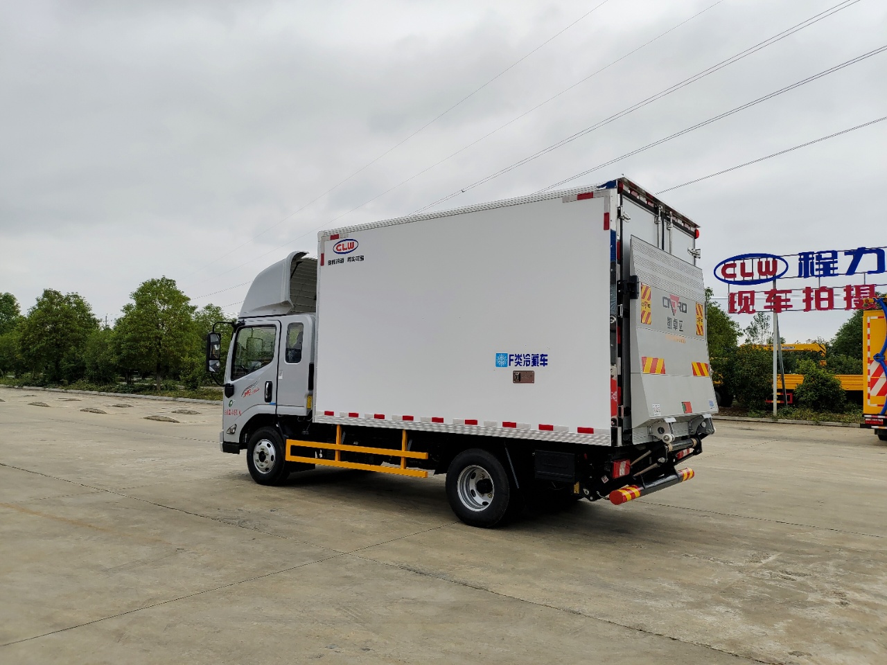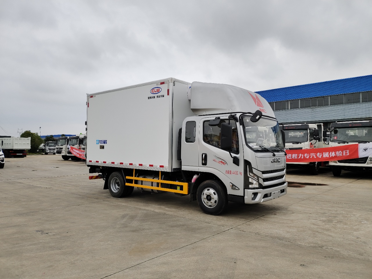 江鈴新凱運排半國六寬體冷藏車采用的是江鈴新凱運專用冷藏車底盤,駕駛室寬度2060mm,發動機排量3.0L,164馬力發動機,匹配有斷氣剎,底盤自重2.25T,油箱容積120L,遙控鑰匙日間行車燈,多功能方向盤,電動窗,定速巡航,電加熱后視鏡,5T后橋,導流罩,倒車雷達,原廠冷藏車雙支架,原廠雙電瓶,原廠加大150A發電機,冷藏車PTO一鍵制冷。整車型號:JX5049XLCTGA26