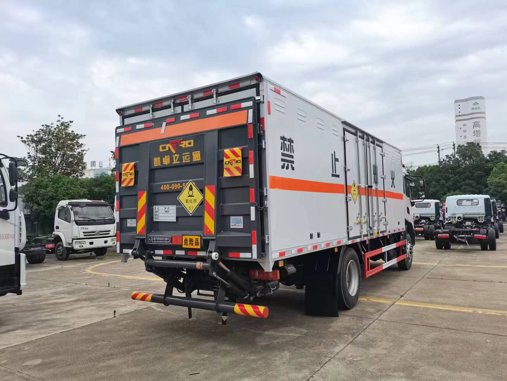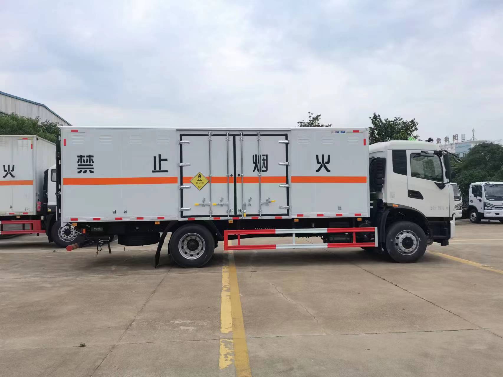 東風天錦高頂雙臥國六氧化性物品運輸車廂體材質(zhì)采用內(nèi)外玻璃鋼,中間聚氨酯保溫材料,后雙開門,廂體右側(cè)選裝中開單側(cè)門,底部采用花紋防滑板,門邊條采用迷宮式橡膠密封條,鋁合金型材包邊,不銹鋼包角,不銹鋼門鎖,不銹鋼門框及合頁,整車帶零下負15度冷藏機組,配備隨車工具,2個滅火器,三角頂燈,貼反光標識等。其他按公告標準制作。
