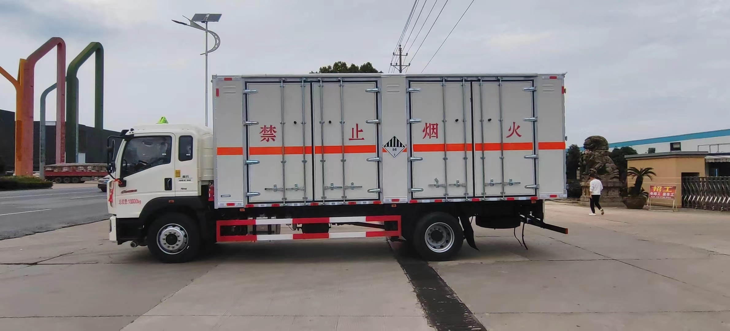 重汽豪沃國六6米8帶左右開門危險品車選擇的是危險品專用底盤,濰柴220馬力發動機,8變速箱,275/80R22.5.輪胎,帶中控鎖、電動門窗、原廠空調。帶盤式制動,ABS,限速器,輪胎應急防爆裝置,帶新規雙預警(車道偏離預警,前向碰撞預警)。該車嚴格按照公告尺寸制作,外板采用1mm厚冷軋板有一次性成型的百葉窗,內飾為導電性能良好的鋁板有透氣孔,內襯為矩形管骨架牢靠穩定,內部填充為透氣防潮阻燃的擠塑板,四種材料經現代工藝復合而成,廂體外部上下鋁合金型材包邊,底板和車廂前下部鋪橡膠皮,后門雙開,右側中部單開門,霧報警器和門防盜報警器,嚴格按照國家危險品相關法規張貼。