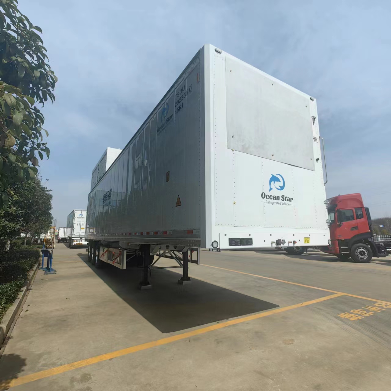 雙胎出口半掛冷藏車選用的是美國開利X4-7300大鳳凰雙溫機組,裝載噸位可達30噸,溫度保鮮時間長,制冷效果好,讓您用車更貼近實際需求!