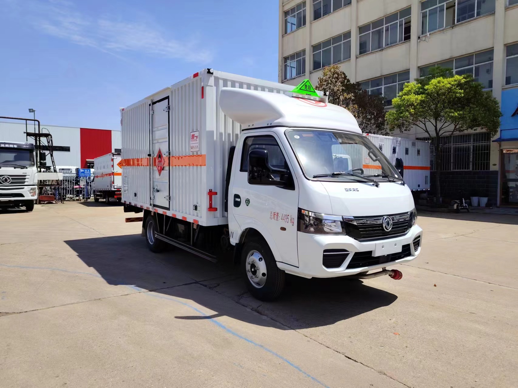 東風途逸3米9柴油危爆車可選復合板箱體和瓦楞板箱體兩種,兩種箱體具體介紹如下:1)復合箱體:廂體采用可產生靜電屏蔽效應的冷扎鋼板,內飾鋁板,中間附以阻燃防潮材料,前置防撞防靜電膠皮。箱體底部鋪防靜電膠皮,后門為對開門,廂體右側開單側門。箱內安裝固定運載物的臥環(huán),門上安裝防盜報警器,箱體頂部防燃煙霧報警器。箱體外側安裝示廓燈及滅火器支架,配兩個滅火器,靜電帶,廂體顏色為白色,供方嚴格按照公告尺寸制作。