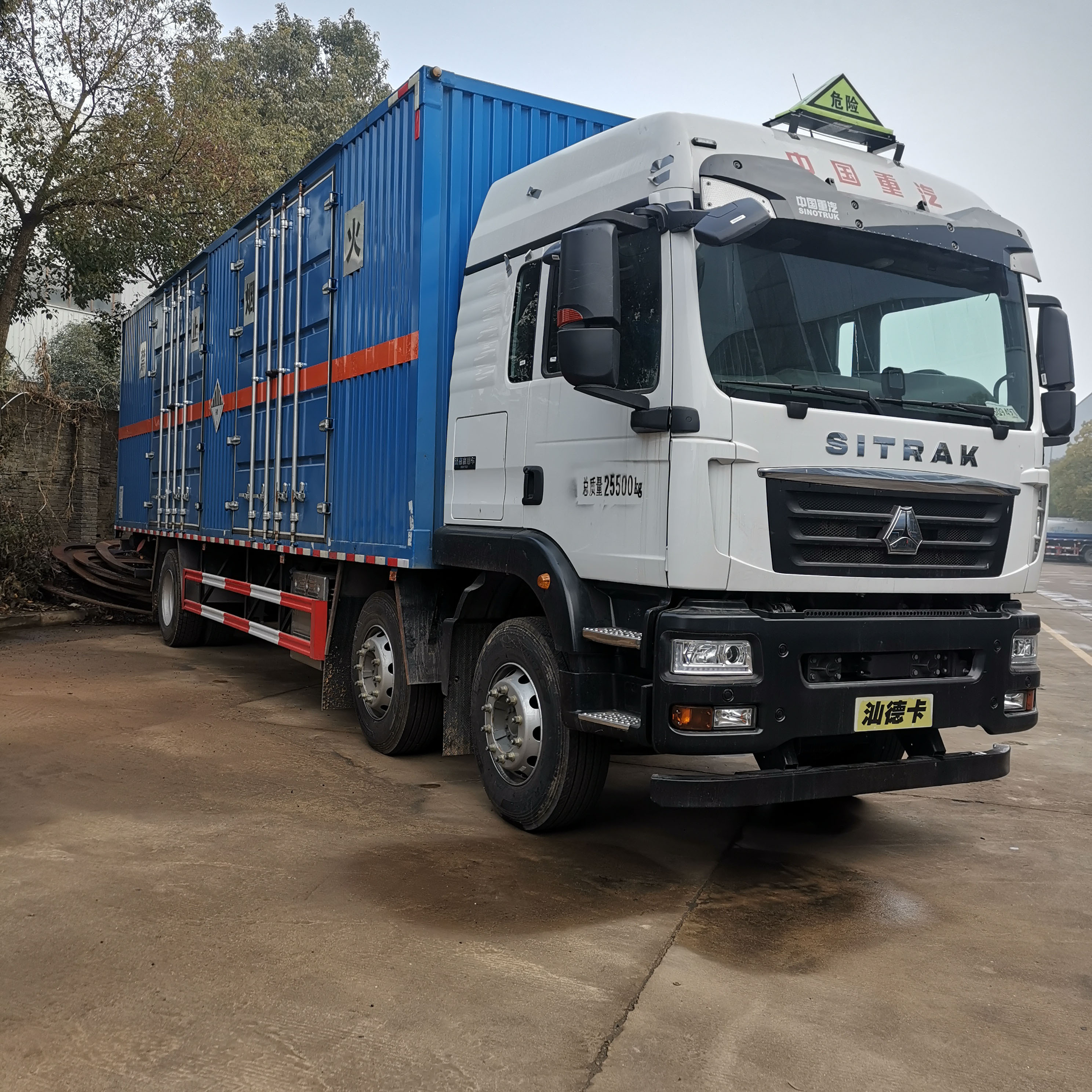 汕德卡三軸350馬力爆破器材運輸車選用的是危化品車底盤,G5S基礎款專用車駕駛室;帶電動電加熱后視鏡、主氣囊+副簡易型座椅,MC07H.35-61發動機。該車的優勢在于開發了自動擋和手動擋兩種形式,同時為了讓車輛使用性能更好更安全,該車內飾加裝了中控大屏,帶四路監控。定制的是HW15710ACL變速箱;VPD050QB前軸(盤);MCJ11BGY自調臂單后橋(鼓);速比4.63;雙層車架(7+4/250);前少后空氣懸架(3/3/-);國產方向機;限速79km/h;前置排氣系統;EBS+ESC;高位保險杠(全金屬);鋁合金車輪(國產);295/80R22.5輪胎(縱向花紋/18PR);400L油箱;LDWS+FCWS(帶雷達);中國重汽智能通D版;雙電源總開關;轉向輪爆胎應急裝置。