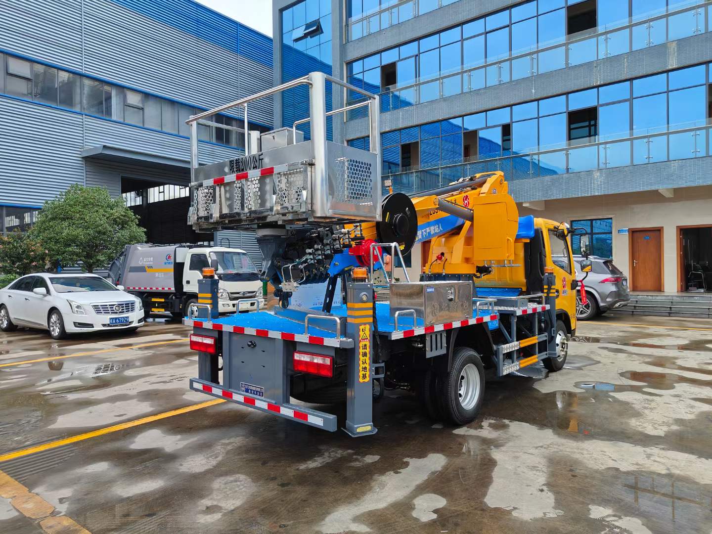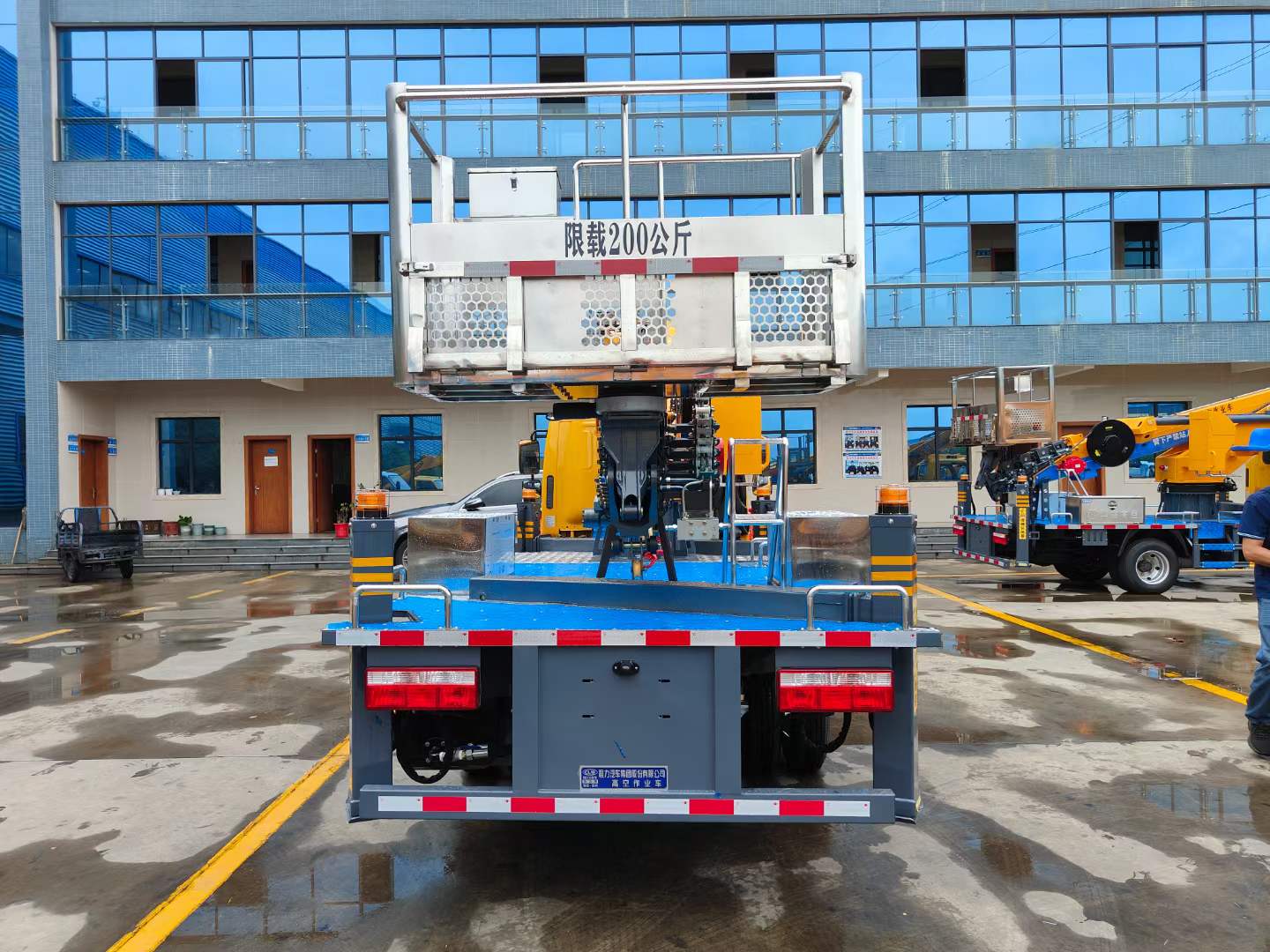 東風多利卡28米國六直臂高空作業(yè)車上藍牌,免征購置稅。底盤采用:全柴132馬力發(fā)動機,定制的是斷汽剎,2950mm軸距,5檔變速箱,帶方向助力電動玻璃,原廠空調,6.50R鋼絲胎。駕駛室可乘坐3人,最高時速100公里/小時。上裝作業(yè)臂采用七節(jié)六邊形高強鋼同步伸縮作業(yè),最大作業(yè)高度28米,前V后V形支腿,支腿可單獨調節(jié),作業(yè)臂360度 平臺承重:200Kg 尺寸:1600x700x1000mm。選用的是應急泵,帶自動發(fā)動機點點火。匹配的是無線遙控及手動裝置。與此同時智能化定位,屏幕顯示三方位操作。