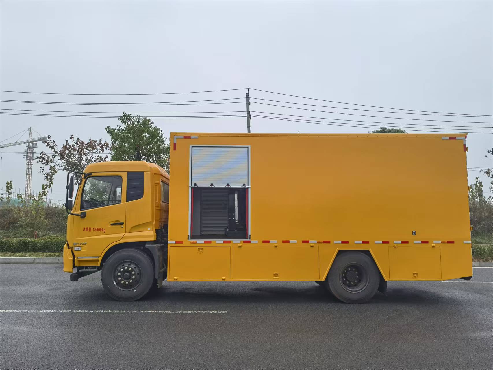 東風(fēng)天錦國六工程車選用的是4×2工程車專用底盤,康明斯六缸230馬力國六排放發(fā)動(dòng)機(jī),法士特八檔(帶高低檔)變速箱,10.00R20鋼絲胎。采用密閉式方艙箱體,單側(cè)各配備3個(gè)卷簾門,尾部一個(gè)卷簾門,合計(jì)共7個(gè)卷簾門。配45KW發(fā)電機(jī)(帶水套加熱器,冬季冷啟動(dòng)加熱)及相應(yīng)取力變速器、控制系統(tǒng)、7.5KW空壓機(jī)組。內(nèi)置油氣分離器廢油罐、歐版真空泵、進(jìn)口1寸工業(yè)卷管器、真空廢油收集器。按鍵加遙控控制,過壓自動(dòng)停機(jī)保護(hù)、廢油液位監(jiān)控保護(hù)等。液壓油加注系統(tǒng)2套:進(jìn)口齒輪泵、1寸卷管器等(根據(jù)實(shí)際需求,帶配套的裝油容器)。稀油加注系統(tǒng)(機(jī)油、齒輪油加注系統(tǒng))2套:進(jìn)口齒輪泵、1/2卷管器、進(jìn)口流量計(jì)\進(jìn)口數(shù)顯加注槍等(根據(jù)實(shí)際需求,帶配套的裝油容器)。潤滑脂加注系統(tǒng)2套:德國氣動(dòng)加注泵(55:1),1/2重型工業(yè)卷管器、加注槍及裝油容器等。防凍液加注系統(tǒng)1套:帶15米卷管器、加注槍及裝液容器。