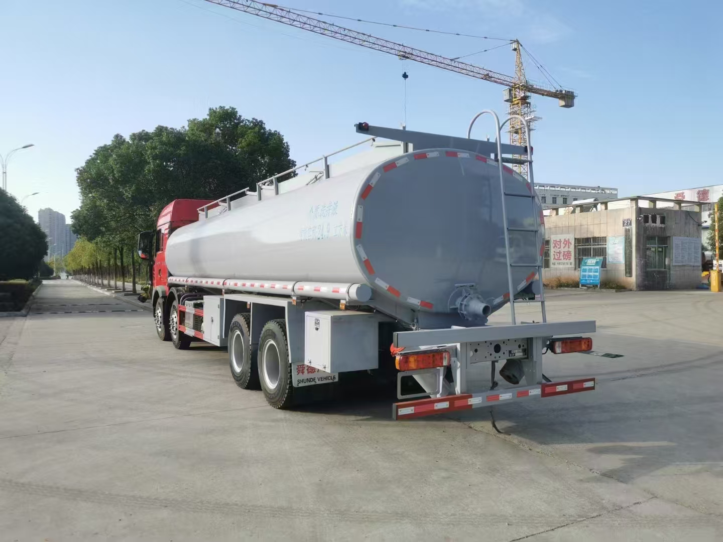 豪沃的車型可謂是市場少有的經典配置,根據運輸要求,罐體嚴格參照公告外觀樣式制作,罐體厚度采用5mm優質碳鋼板制作,方圓罐,罐體容積30方,兩個普通罐口,帶80-60自吸自排泵裝置左側,獨立四個折疊護欄,水壓封頭,右邊雙開門工具箱,罐體尾部帶一個150蝶閥自流,新式擋泥板,鐵炮筒,網狀走道,后爬梯加粗,兩根輸油管,帶牌照燈座,正駕側尾部帶一個小工具箱,兩個滅火器,其余廠內標配。油漆:灰色。