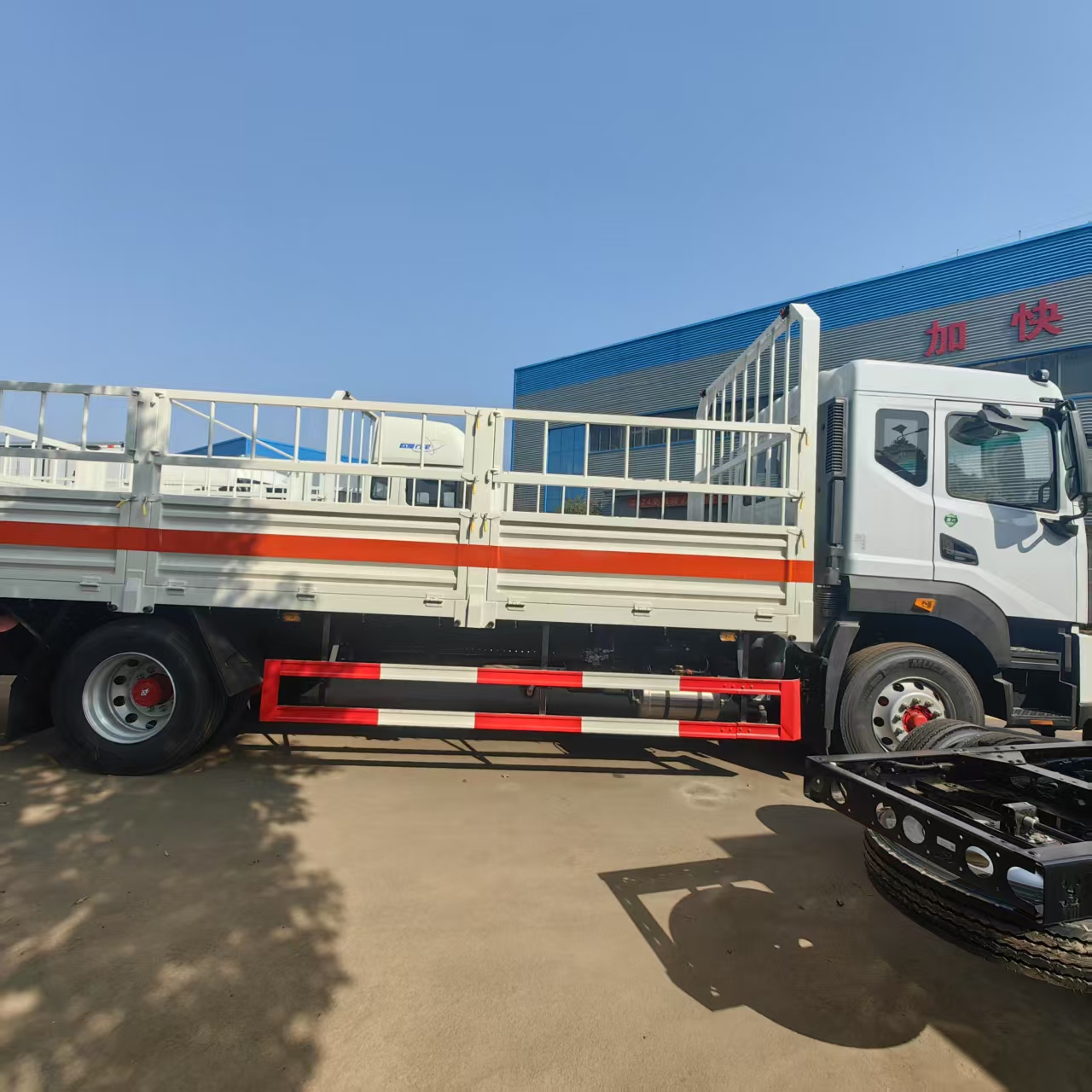 東風D9新款駕駛室氣瓶車貨箱選用的是可拆卸高欄結構,底板采用的是花紋板,貨箱長度可達6米8,額載可達10噸。尾板可多選,讓您用車更無憂!
