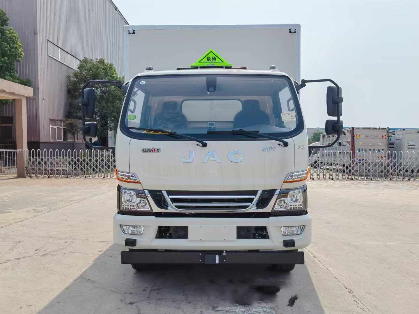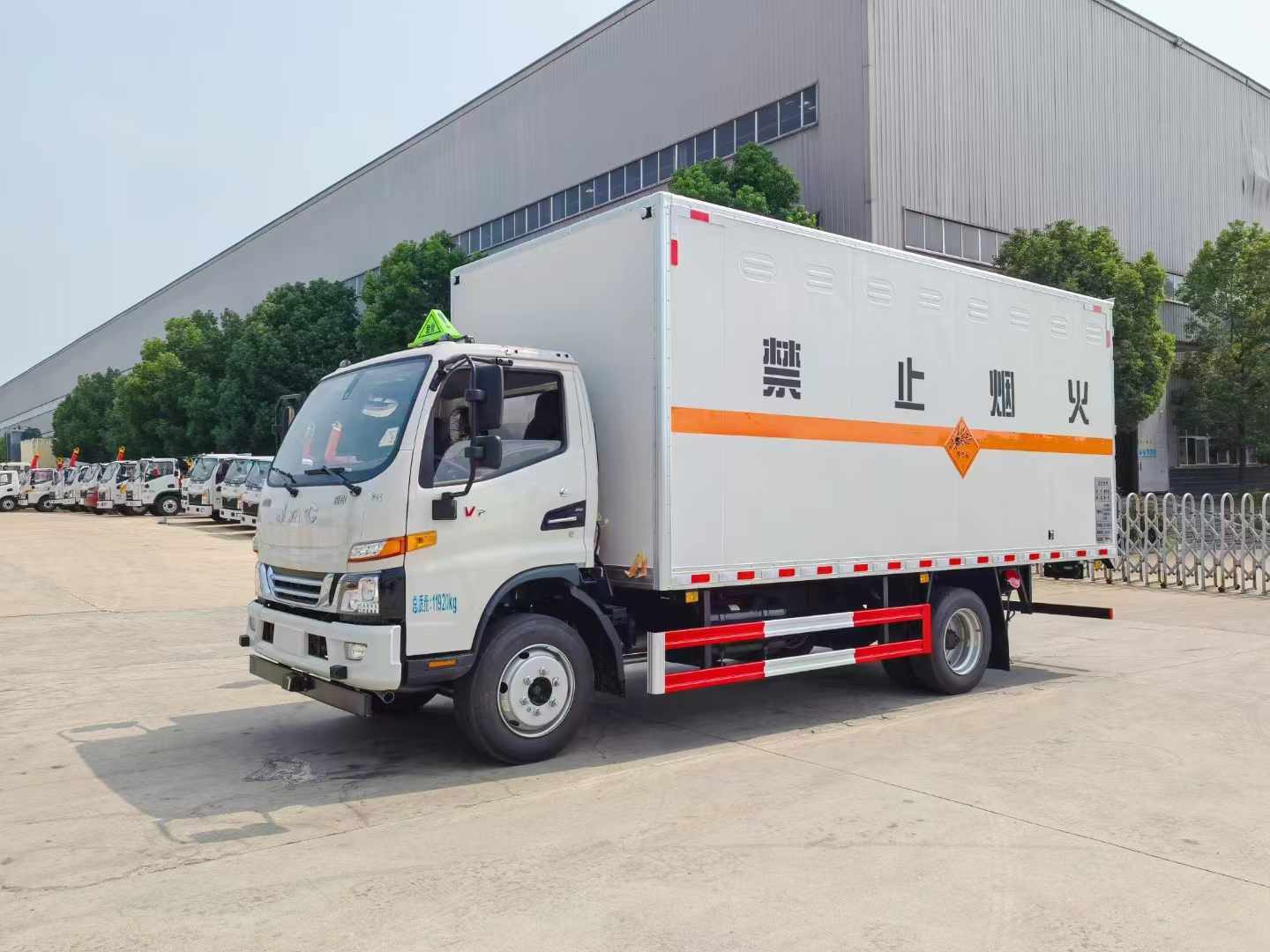 江淮駿鈴V7國六民爆車選用的是采用江淮高端駿鈴V7駕駛室,寬體3人座,3845mm軸距,康明斯發(fā)動機160馬力,可選裝云內(nèi)163馬力發(fā)動機,斷氣剎,245/70R19.5輪胎,ABS,液壓方向助力,氣推離合助力,OBD接口,框架式后視鏡,多功能方向盤,收音機,可調(diào)節(jié)方向盤,大燈調(diào)節(jié),發(fā)動機燃油預(yù)熱,多功能儀表,原廠空調(diào),PTO,前盤,限速,ABS,行車記錄儀,防爆輪胎,剎車片報警裝置。2021新規(guī)(雙預(yù)警:車道偏離預(yù)警LDWS、前碰撞預(yù)警FCWS)根據(jù)駕駛室寬度,該車了承載3人。拉煙花民爆品等物品都需要專用的車型,箱體選用的是雙層金屬結(jié)構(gòu),箱體側(cè)面及尾部側(cè)門形式。外板采用的是靜電屏蔽冷軋鋼板,底板為花紋板上鋪靜電膠皮。尾部可選靜電拖帶。