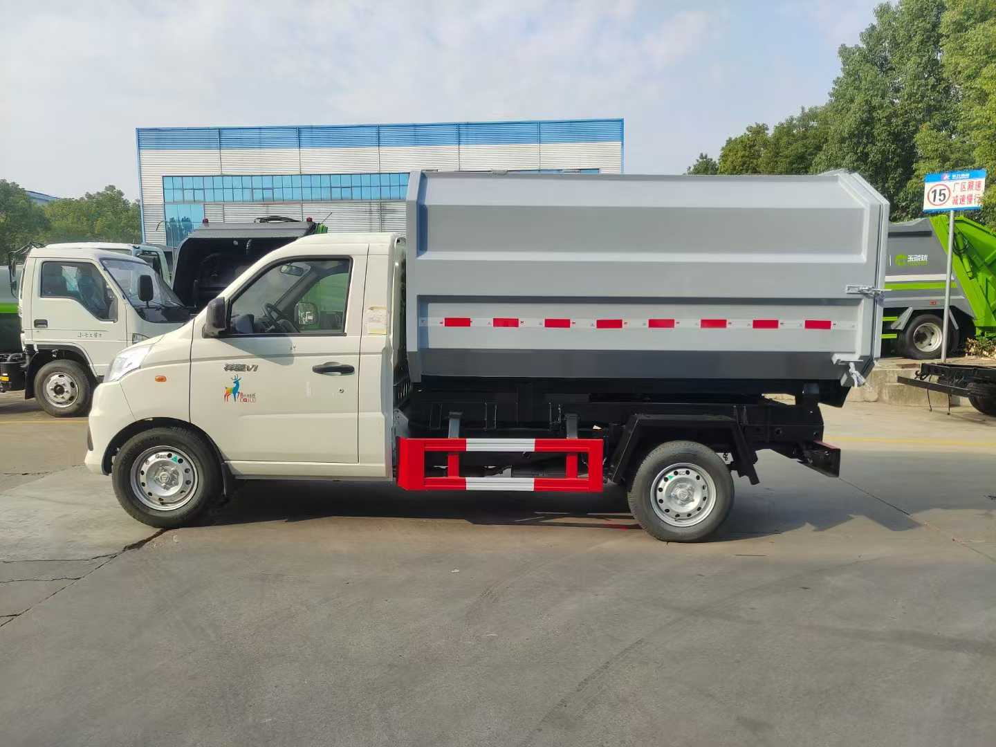 福田祥菱國六掛桶垃圾車,箱容積約4方側邊帶掛桶機構,箱體舉升自卸。采用的半長頭駕駛室設計,在提升駕駛員舒適度的同時,通過優化空氣動力學降低能耗;拉臂機構經10萬次疲勞測試,U型梁整體沖壓成型,惡劣工況下壽命延長50%;并且多規格箱體兼容。該車可以掛120L和240L兩種規格的塑料垃圾桶。輕便靈活的車身設計可穿梭于狹窄街巷和高密度的樓房社區,實現高轉運量,液壓聯動裝置實現20秒內完成空/滿箱體切換,單日處理量提升40%,適用于垃圾中轉站高頻作業場景,搭配東安動力降低燃油消耗15%,滿足住宅區靜音作業需求;搭載的低排放動力引擎與智能監控平臺,更實現了作業過程低碳化與清潔化管理。這一產品的規模化應用,標志著中國城市垃圾處理正式邁入“高效+環保”雙驅時代。