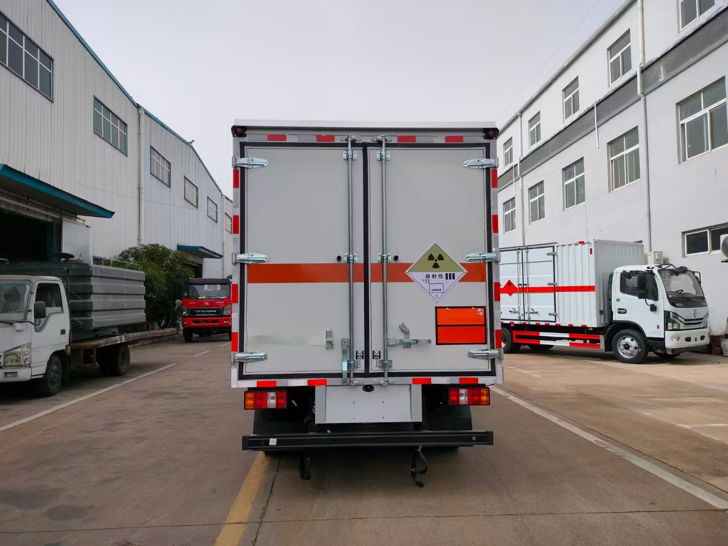 江鈴凱運(yùn)國(guó)六放射性危險(xiǎn)品車選用的是江鈴凱運(yùn)1890mm底盤,3360mm軸距,麥格納格特拉克5檔變速箱,五十鈴130馬力,斷氣剎,700輪胎,100L油箱,電源總開關(guān),限速80,排氣管前置、ABS、LDW、FCW。整車尺寸:5999×2230×3150/3050/2850mm,廂體尺寸:4150×2100×2100/2000/1800mm。在同類車型中,該款車型駕駛室寬,帶氣剎制動(dòng)性好,可安全行駛。嚴(yán)格按照公告尺寸制作,底板采用3MM花紋板,外板采用1mm厚冷軋板有一次性成型的百葉窗,內(nèi)飾為導(dǎo)電性能良好的鋁板有透氣孔,內(nèi)襯為矩形管骨架牢靠穩(wěn)定,內(nèi)部填充為透氣防潮阻燃的擠塑板,四種材料經(jīng)現(xiàn)代工藝復(fù)合而成,廂體外部上下鋁合金型材包邊,底板和車廂前下部鋪橡膠皮,后門雙開,右側(cè)前部單開門,車輛外部有靜電帶、滅火器、防火罩,車廂內(nèi)安裝煙霧報(bào)警器和門防盜報(bào)警器,嚴(yán)格按照國(guó)家危險(xiǎn)品相關(guān)法規(guī)粘貼