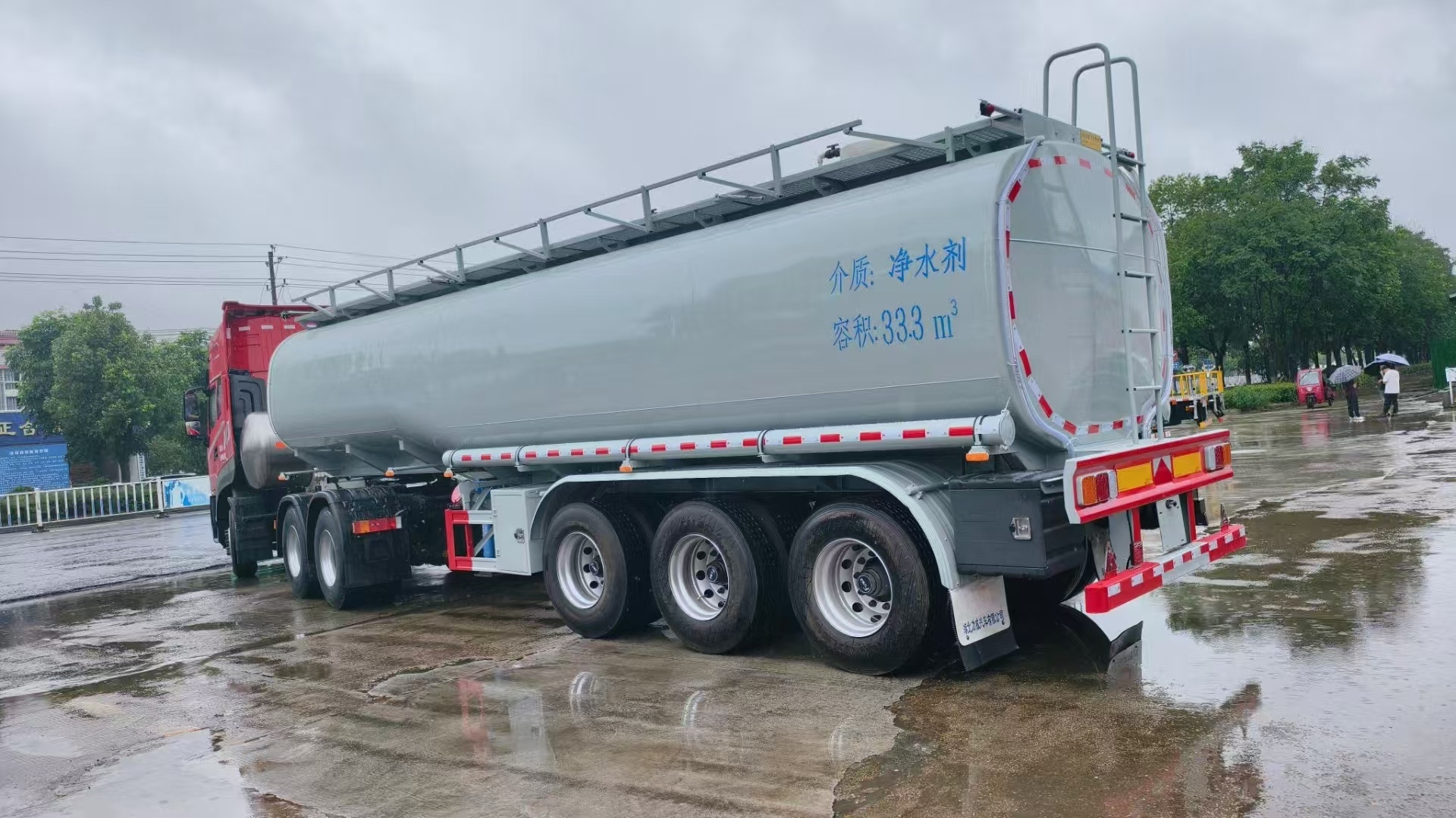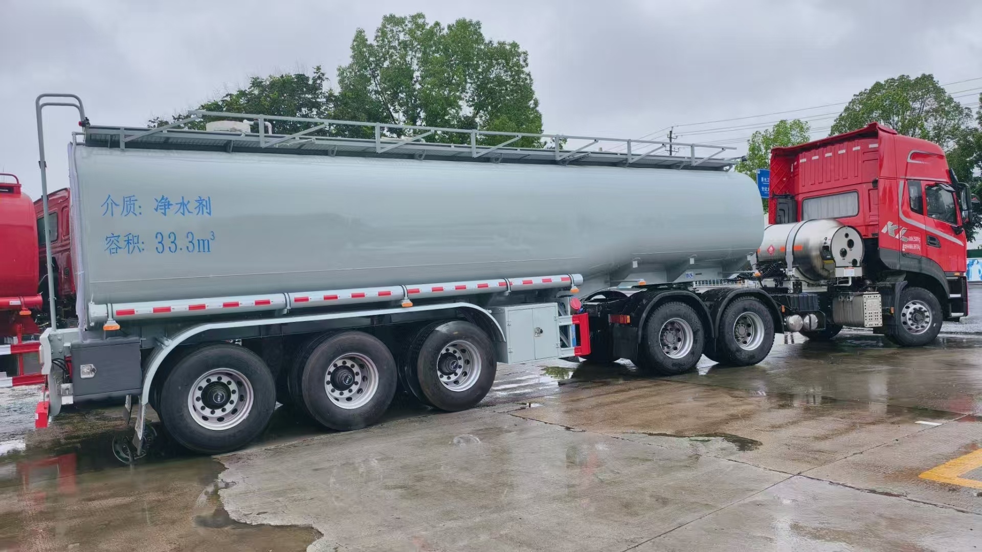 31方供液半掛車發(fā)往四川樂山,罐體采用4.5毫米鋼板制作,內襯16毫米厚聚乙烯,三道鋼襯塑防浪板,三個清洗罐口。罐體采用的是國標板材,優(yōu)質鋼材。縱梁采用焊接形式,強度加倍更扎實。帶專用自動裝卸裝置,方便安全。罐體全部采用的是全自動無縫焊接,水壓封頭一次成型。罐體通過酸洗、紅色防銹底漆,掛灰打磨十年不銹不漏更耐用。