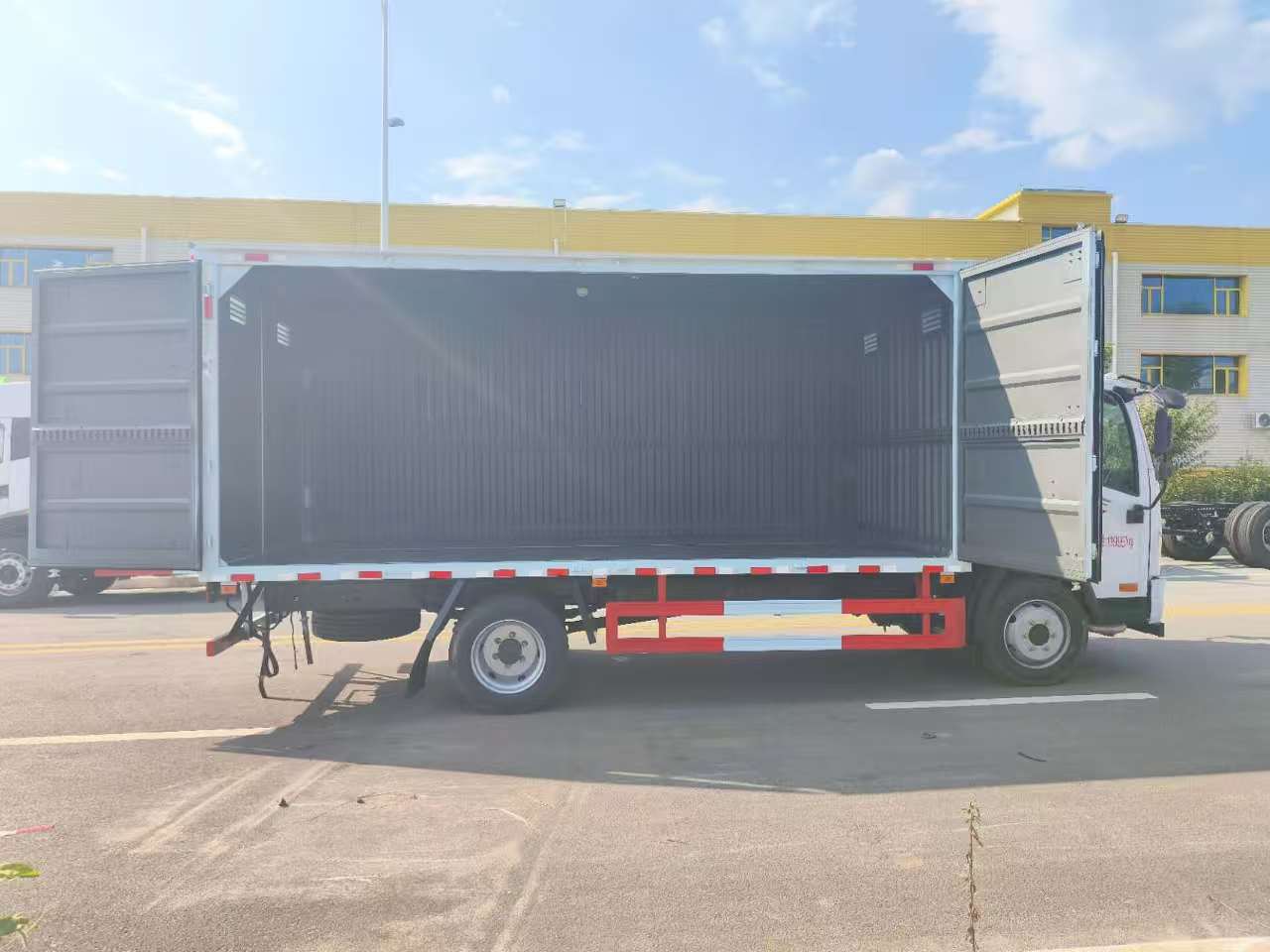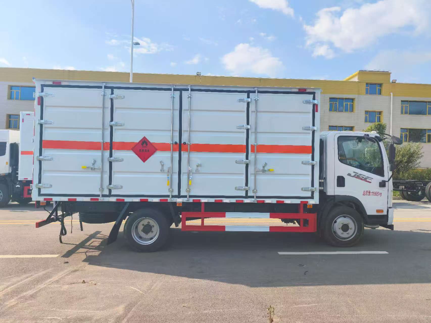 解放J6F國六易燃液體廂式車屬于國六排放標(biāo)準(zhǔn),環(huán)保合規(guī),暢行無憂。采用的是大柴180馬力發(fā)動機(jī),小八檔變速箱,加大加粗的后橋,拉貨承載力更強(qiáng)。該車開門設(shè)計使得廂體側(cè)面能夠大面積敞開,裝卸貨物時,叉車、搬運設(shè)備等可以直接從側(cè)面靠近廂體內(nèi)部,無需受限于狹小的開口,大大縮短了貨物裝卸的時間。比如在需要快速轉(zhuǎn)運大量桶裝易燃液體的場景下,能夠?qū)崿F(xiàn)批量、快速裝卸,提高了物流運輸?shù)男剩瑴p少了車輛等待時間,提升了整個供應(yīng)鏈的運轉(zhuǎn)速度。便于貨物擺放與固定。廂體全開門后,操作人員可以全方位進(jìn)入廂體內(nèi)部,根據(jù)貨物的尺寸、形狀和數(shù)量,更加靈活合理地進(jìn)行貨物的擺放和堆碼。同時,對于易燃液體運輸而言,貨物的穩(wěn)固固定至關(guān)重要,全開門設(shè)計方便操作人員深入廂體,使用繩索、綁帶等工具對貨物進(jìn)行牢固的固定,防止在運輸過程中因車輛顛簸、急剎車等情況導(dǎo)致貨物移動、碰撞,降低安全風(fēng)險。