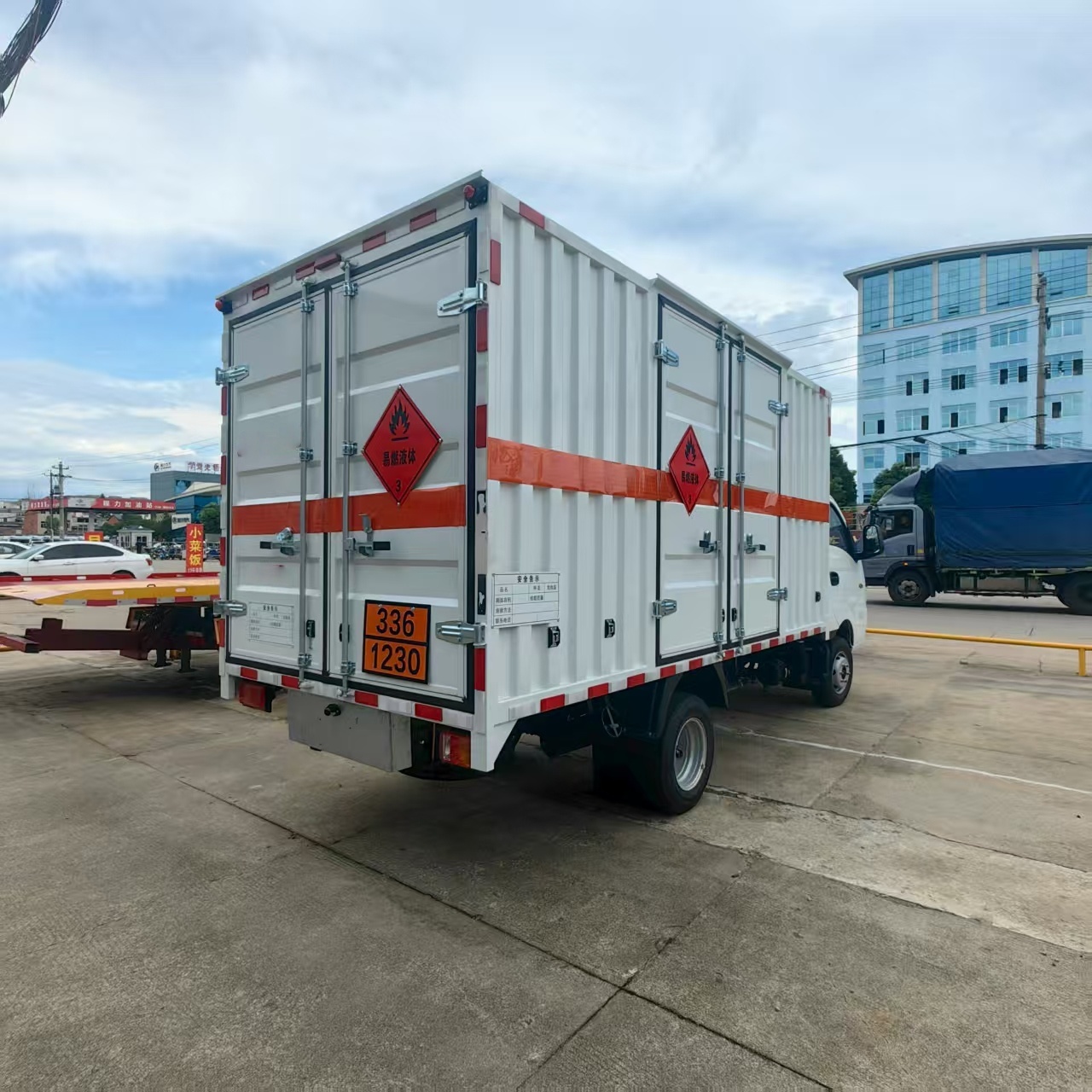 吉利燒甲醇易燃液體廂式車選用合法合規的危險品車底盤,搭載130馬力甲醇發動機(JLC - 4M18K),帶動力轉向、前盤制動、ABS等配置一應俱全,驅動電機峰值扭矩達420N·m ,無論是山區的陡坡,還是高速上的超車,都能輕松應對,動力輸出穩定可靠,重載爬坡能力更優于傳統燃油車。讓您在運輸易燃液體的道路上,一路暢行無阻,穩穩將貨物送達目的地。廂體采用特殊的防火、防爆材料精心打造,具備出色的密封性能,有效防止運輸過程中液體泄漏和意外情況發生,為每一趟運輸行程提供全方位的安全保障。車輛還配備了車道偏離預警、前碰撞預警等先進安全系統,時刻為您的行車安全保駕護航,讓您運輸無憂。